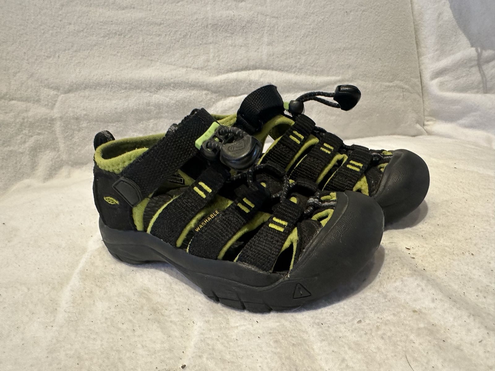 Keen toddler size 9 black with lime green trim, washable hiking sandals. These are in excellent condition, see photos for details. I take cash or Venmo, but cash is preferred. Text is best. 801-201-4446. Check out my other ads for additional sizes and styles.