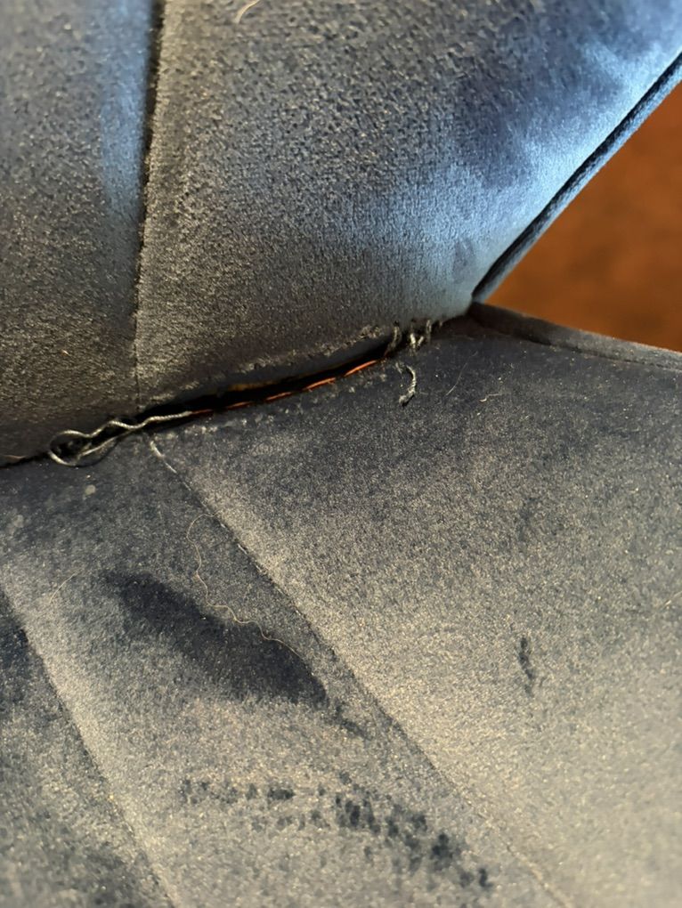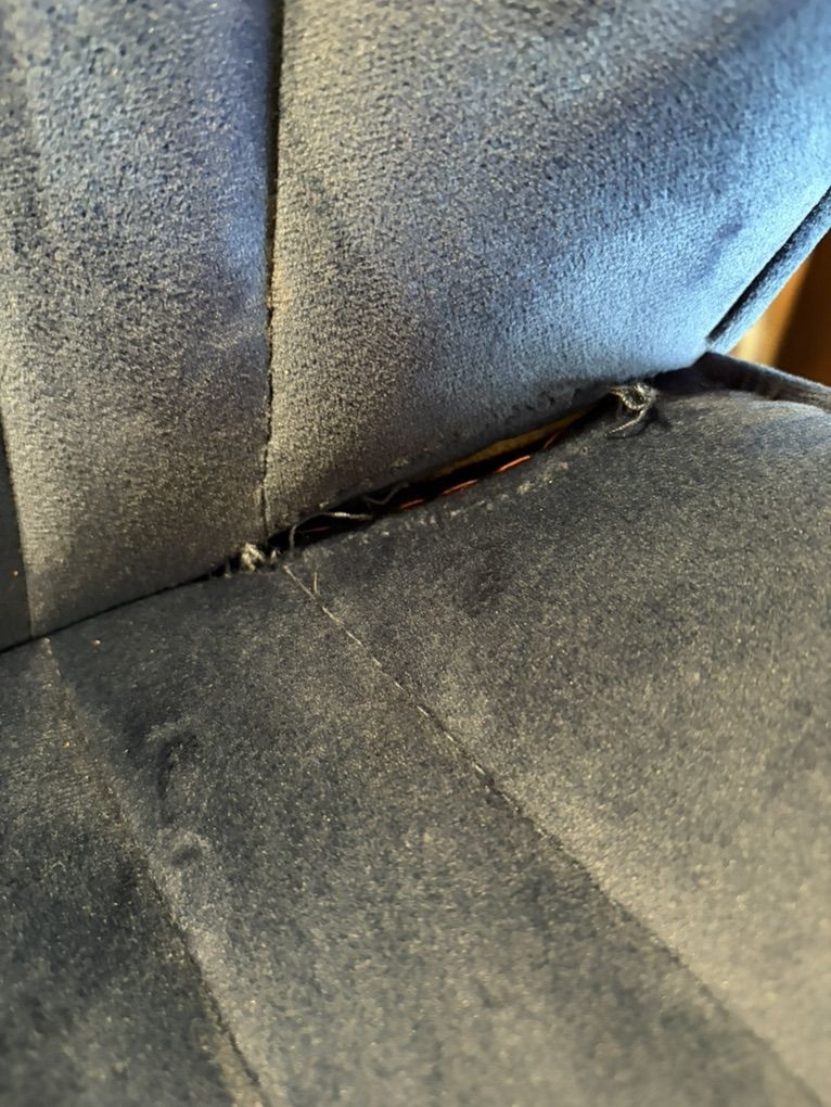 We have a pair of blue bar stools. Adjustable height. Seam is coming undone on both. Was like this when we got them, it was a factory flaw. Very small and easy repair.