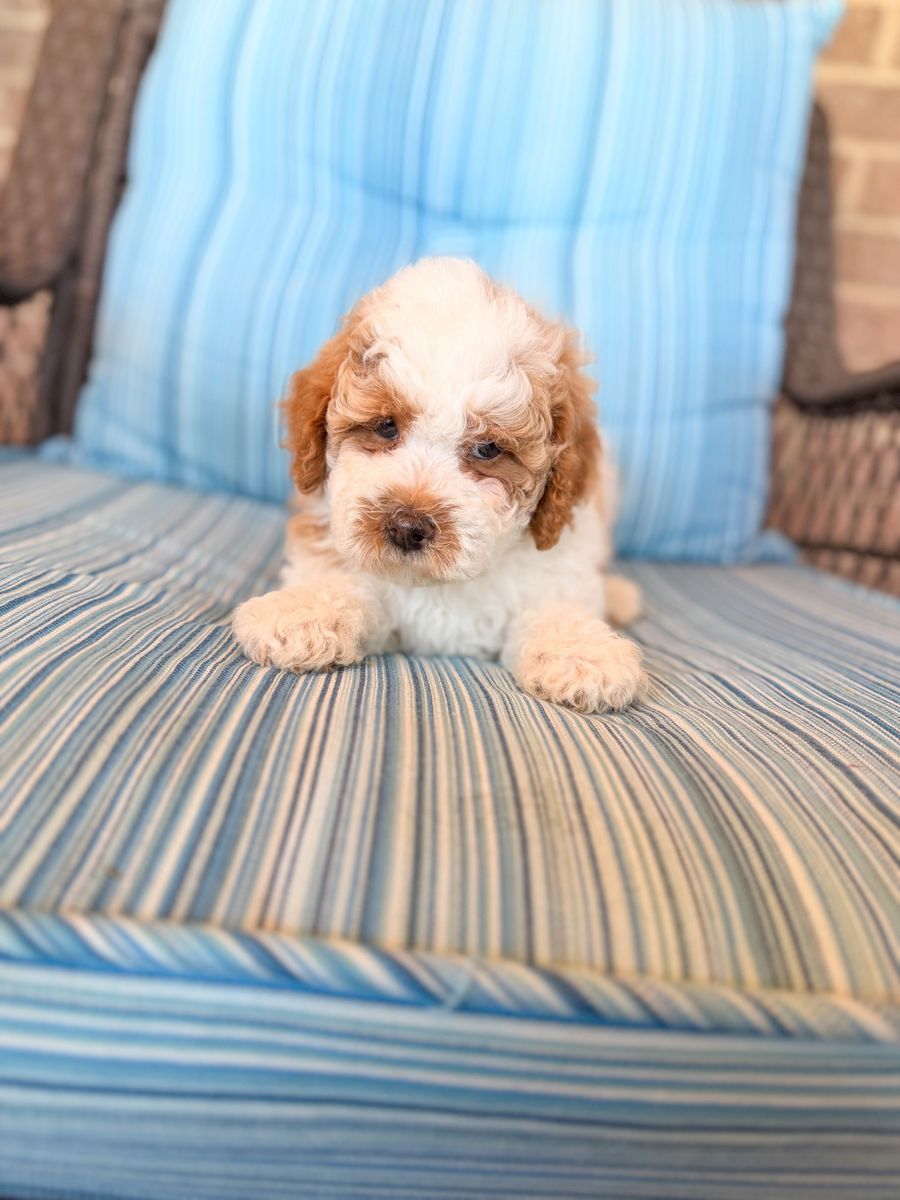 These 3 boys are ready April 29! They will weigh 20-30lbs full grown. They come from health tested parents, first vaccinations, vet check and a goodie bag. Mom is a 22lb Bernedoodle, dad is an 18lb poodle.