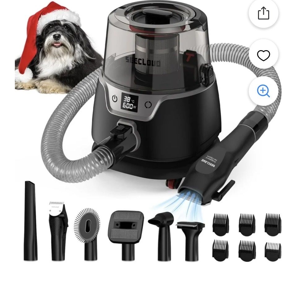 Seecloud Dog Grooming Vacuum, and Dog Dryer with 6 Pet Grooming Tools, 600w Dog Grooming Kit with 3L Dust Cup, Low Noise Pet Hair Vacuum with Dog Clippers for Grooming