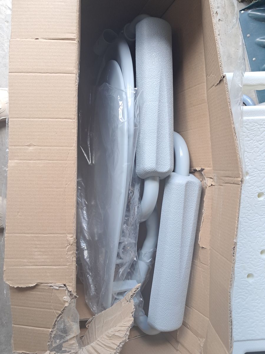 New commode chair. Has adjustable height legs and comfy armrests. Comes with a removable bucket. Great for bedside or over toilet use. $25 OBO