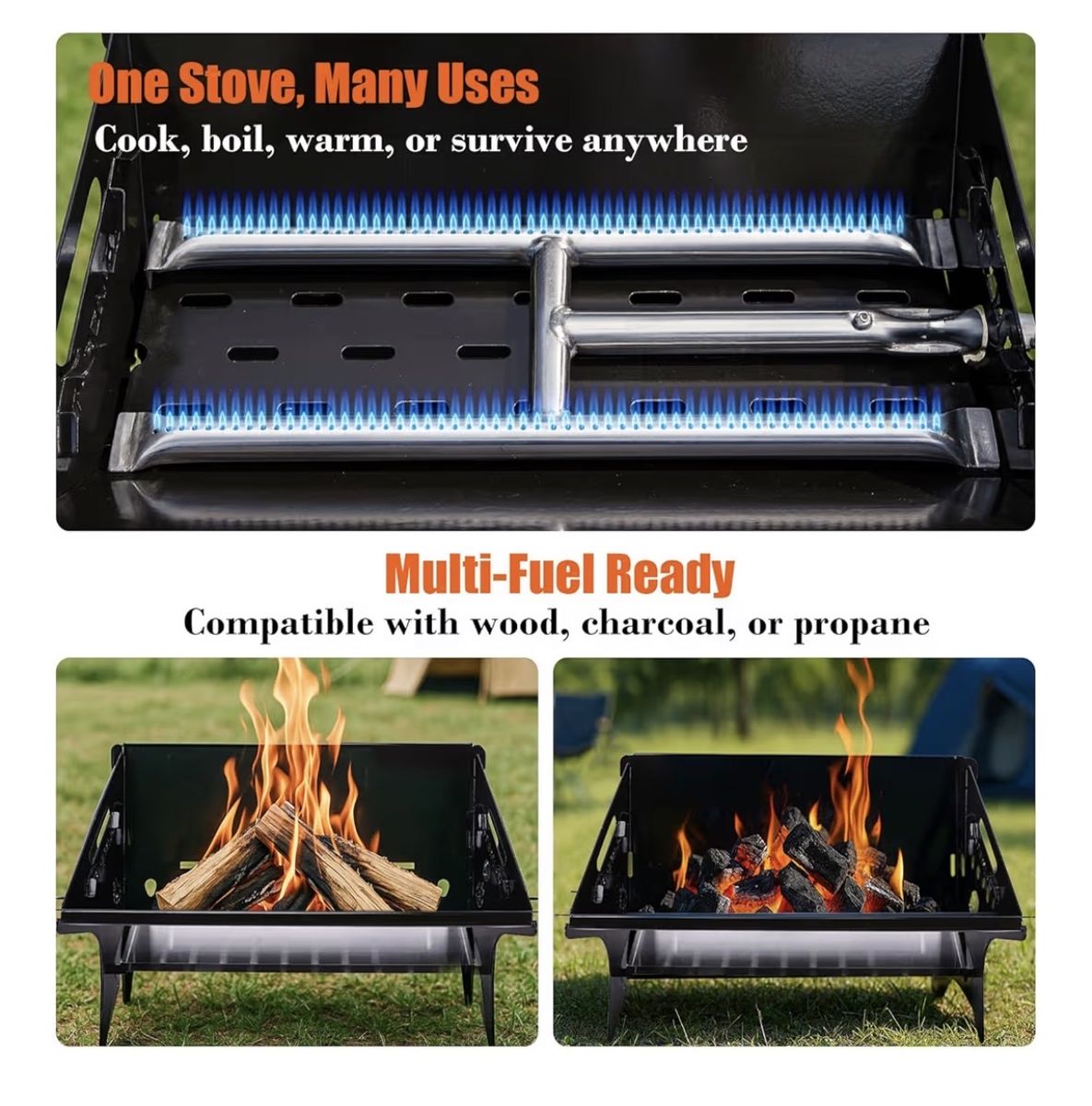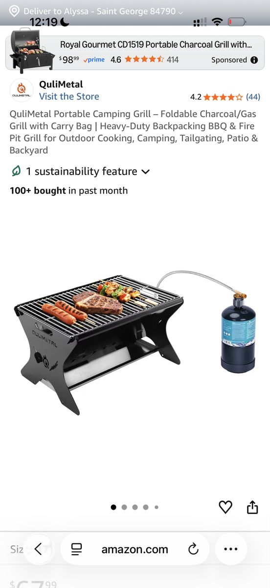 VenmoCondition: Excellent Color: Black Special Features: Portable, Foldable, Multi‑Fuel One Grill, Endless Outdoor Moments This QuliMetal portable camping grill + firepit does it all — BBQ cooking, cozy bonfires, and built‑in spark protection in one compact design. Perfect for camping, patios, tailgating, and backyard nights. All‑Season Outdoor Companion • Summer: BBQs, campsite cooking, beach grilling • Winter: Bonfires, patio heating, marshmallow roasting Your year‑round outdoor cooking + heating setup. Safe & Family‑Friendly High‑strength steel frame and a food‑grade stainless steel grate double as a spark‑blocking fire screen. Rust‑ and corrosion‑resistant — great when kids or pets are nearby. 3‑in‑1 Fuel Versatility Use charcoal for smoky flavor, wood for campfire vibes, or gas for quick clean heat. • 5,000 BTU burner • Connects to standard 1‑lb propane cylinder (not included) • Easy ignition with a torch lighter Cooking Ready 167.48 sq.in stainless steel cooking grate — perfect for steaks, veggies, skillets, burgers, and cast‑iron pans. Portable & Travel‑Ready • Dimensions: 17.71" D × 11.45" W × 8.51" H • Folds flat to 2" thick • Weight: 13.4 lbs • Carry bag included Ideal for RV trips, beach days, and camping. Built to Handle the Heat High‑temp coated steel withstands up to 1,200°F without warping. Durable, rust‑resistant grate for long‑term use. Tool‑Free Assembly Slot‑grill collapsible design sets up in minutes. No tools needed. Price: $60 — cash or Venmo Pickup in St. George