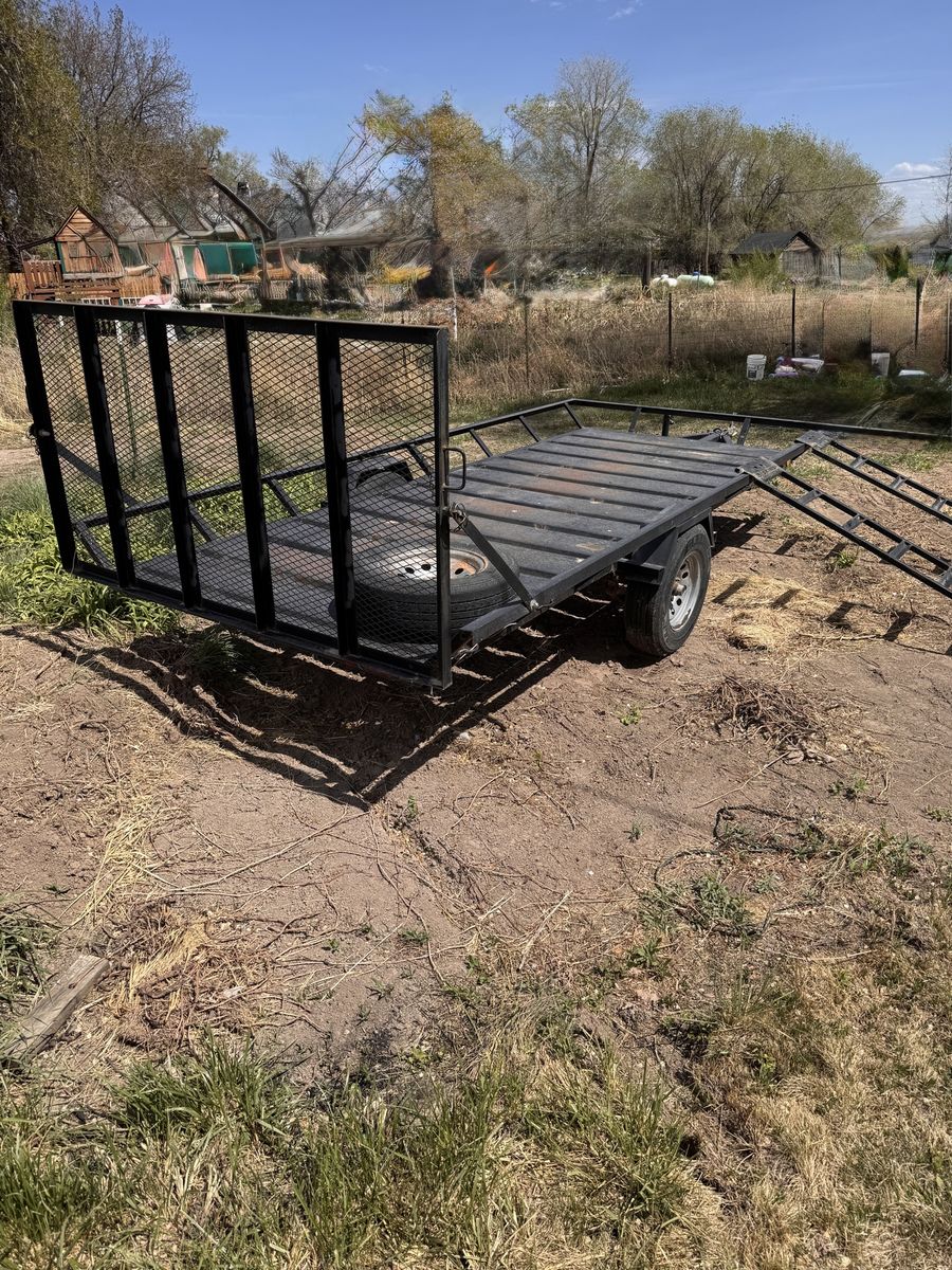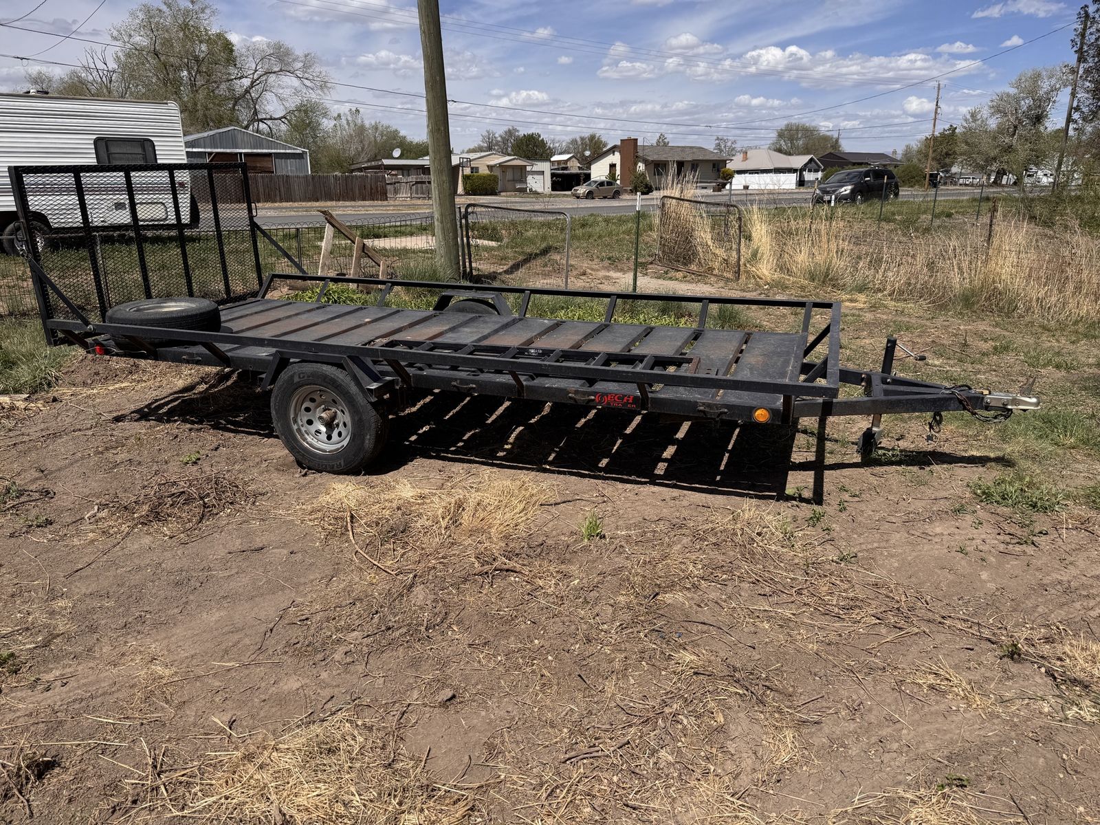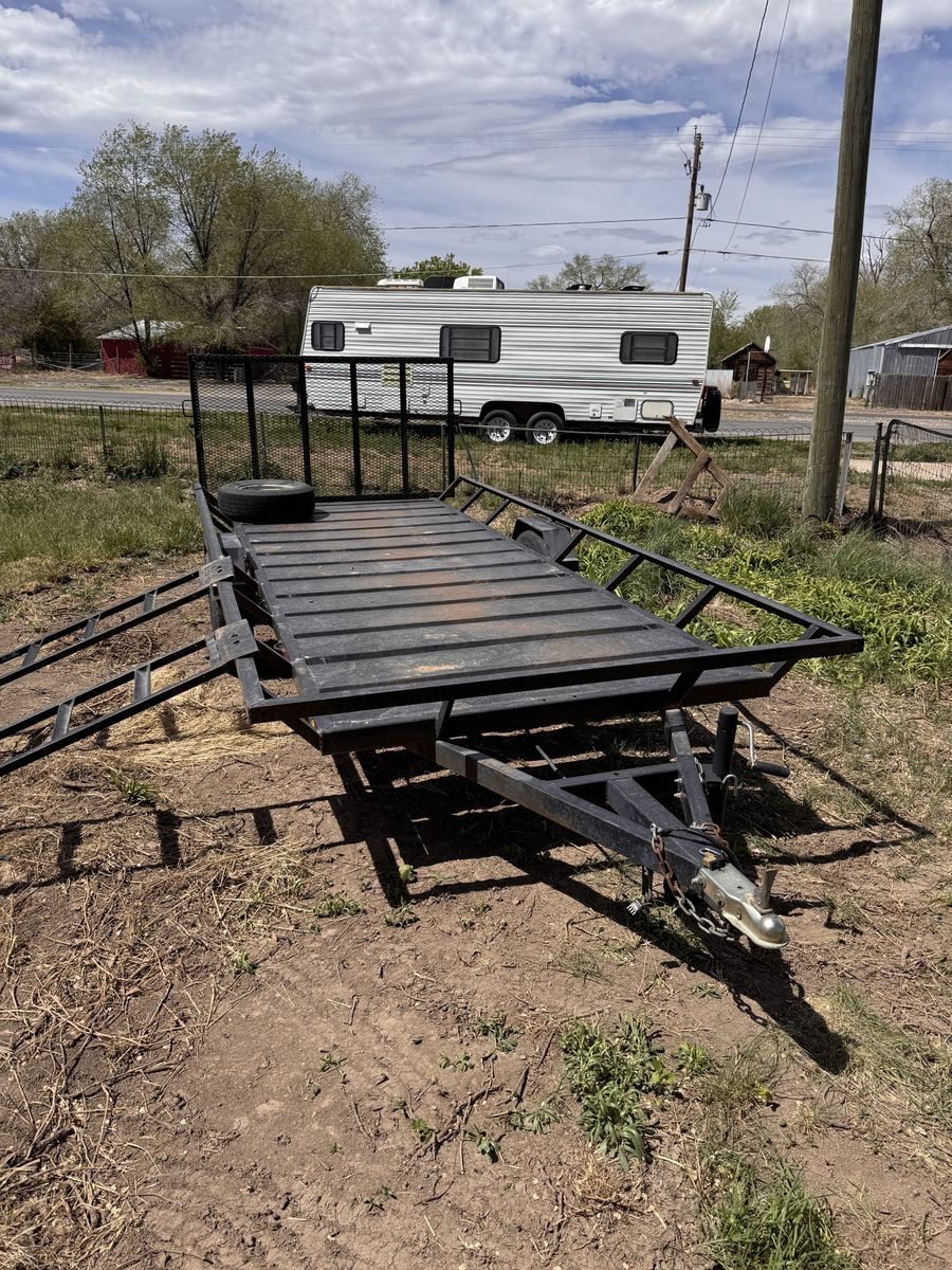 This has been an awesome trailer! We bought this trailer to haul our 4-wheelers but we recently bought a jeep and need to buy a trailer that will haul it. This trailer sits higher and pulls fantastic! The deck size is 5’3” X 14’. It has tie points along the side as well as in between the decking. It has an added rear gate as well as the ramps to be able to load from the side. Call or text with any questions.