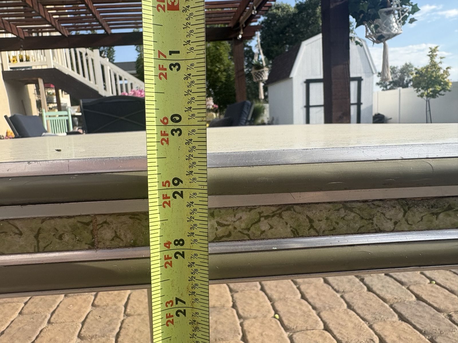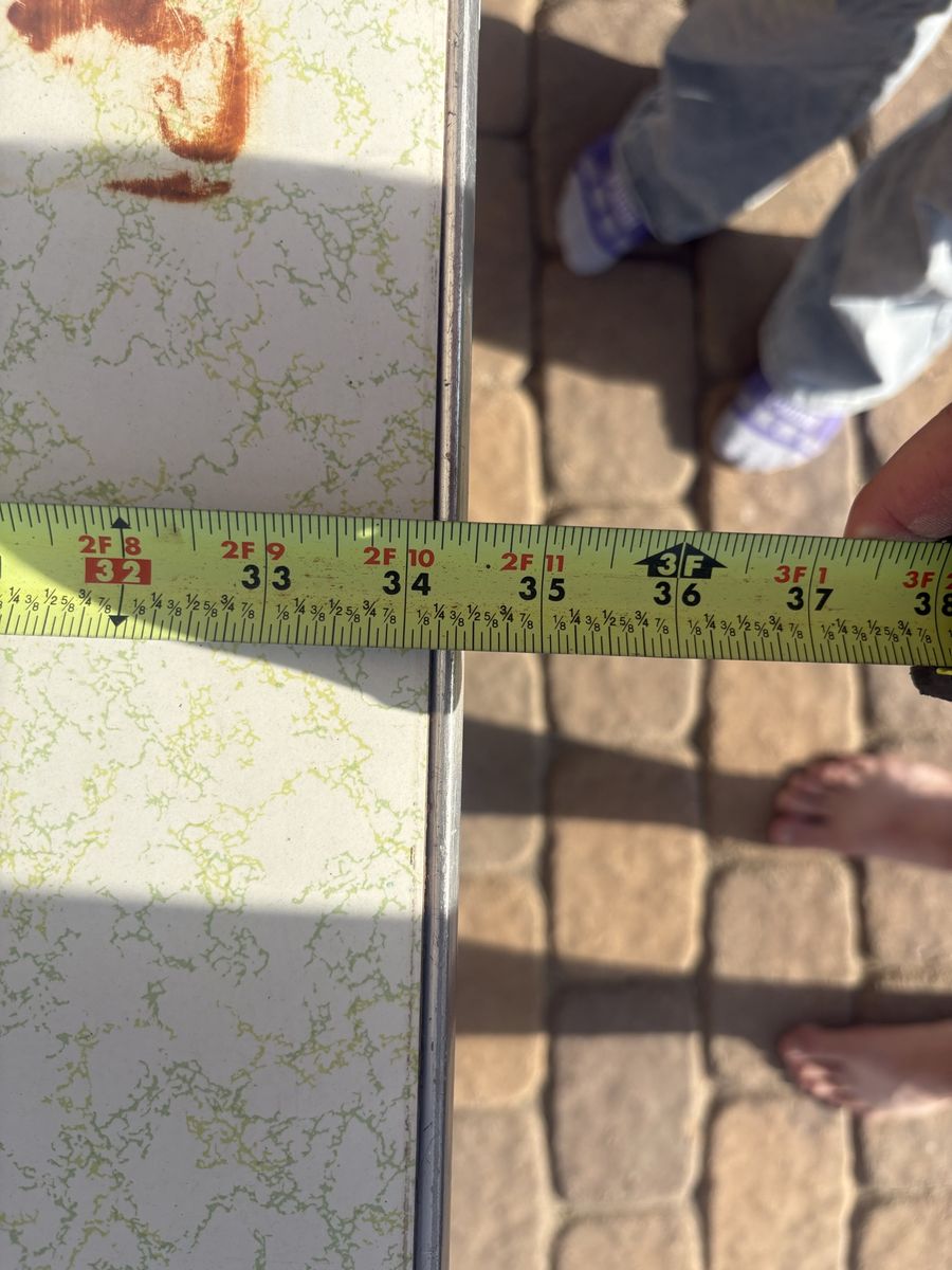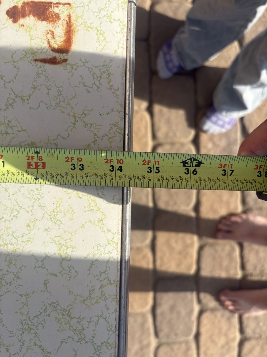 VenmoMetal patio table. Really heavy, but extremely sturdy table and doesn’t teeter. Has some slight rust but can be spray painted and made to look like new. Sizes are in the pictures