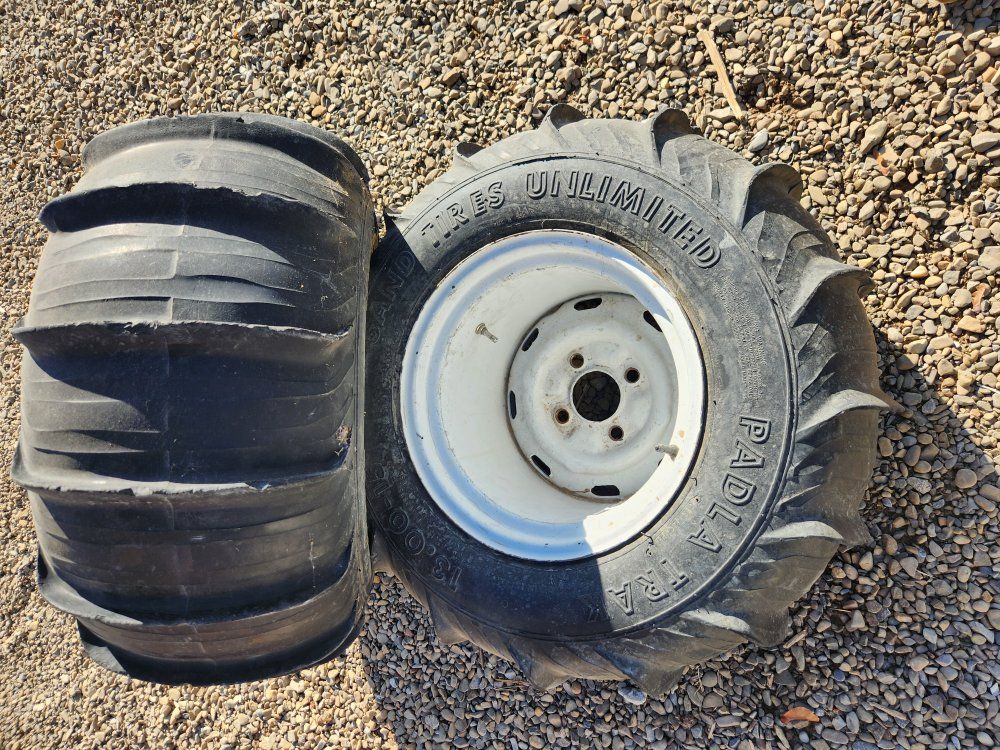 1300-15 Sand Tires Unlimited paddles on VW 4 lug wheels Asking $400