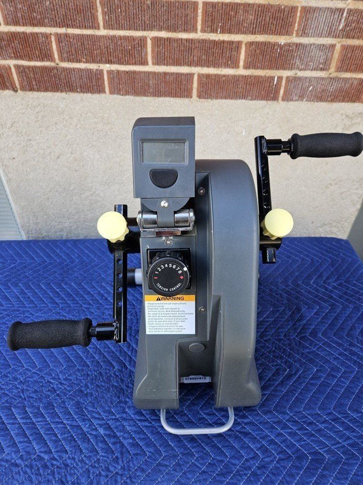 This versatile machine is perfect for upper body rehabilitation, low-impact cardio, or strength conditioning. Great for physical therapy, recovering from injuries, or building shoulder/arm endurance without stressing your lower body. Key Highlights: Portable & self-powered – no electricity needed, easy to move and set up on a table or floor. 8 levels of smooth, quiet magnetic resistance with a simple twist knob. Bi-directional pedaling – works forward or backward for balanced workouts. Digital console displays time, calories, and more. Adjustable crank arms with comfortable foam grips. Can also function as a seated arm bike or tabletop upper body cycle. Compact design with sturdy build – ideal for home, clinic, or rehab use. Super quiet belt drive system. Includes warning labels and original-style setup. Model shows minimal wear with clean surfaces. Perfect for seniors, athletes cross-training, or anyone needing gentle upper body exercise. Originally a professional rehab/clinic piece.
