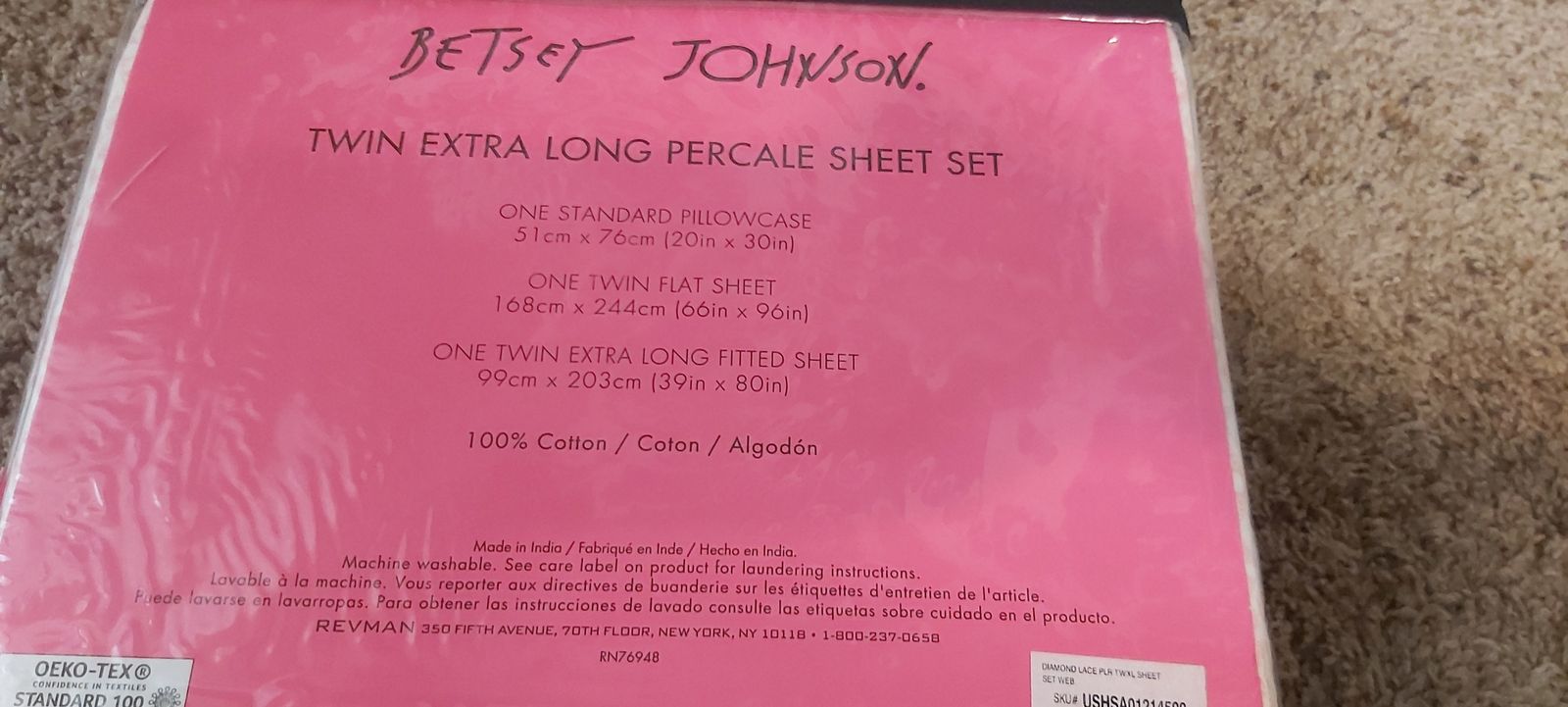 PayPalBrand new twin xl 100% cotton percale sheet set. Brand is Betsy Johnson. If you know about the luxury of 100% cotton sheets- you know! Pickup in Tooele. $15.
