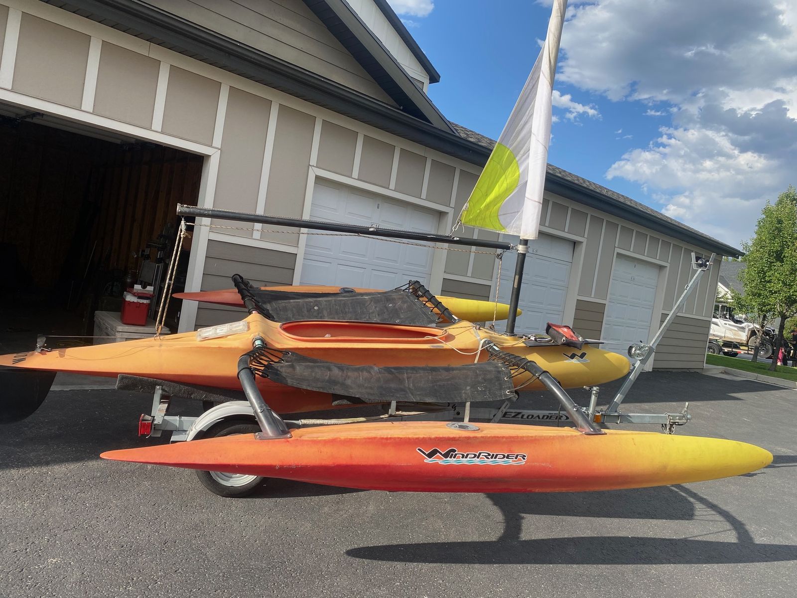 - WindRider 16 trimaran (stable 3-hull design) — great for beginners and experienced sailors