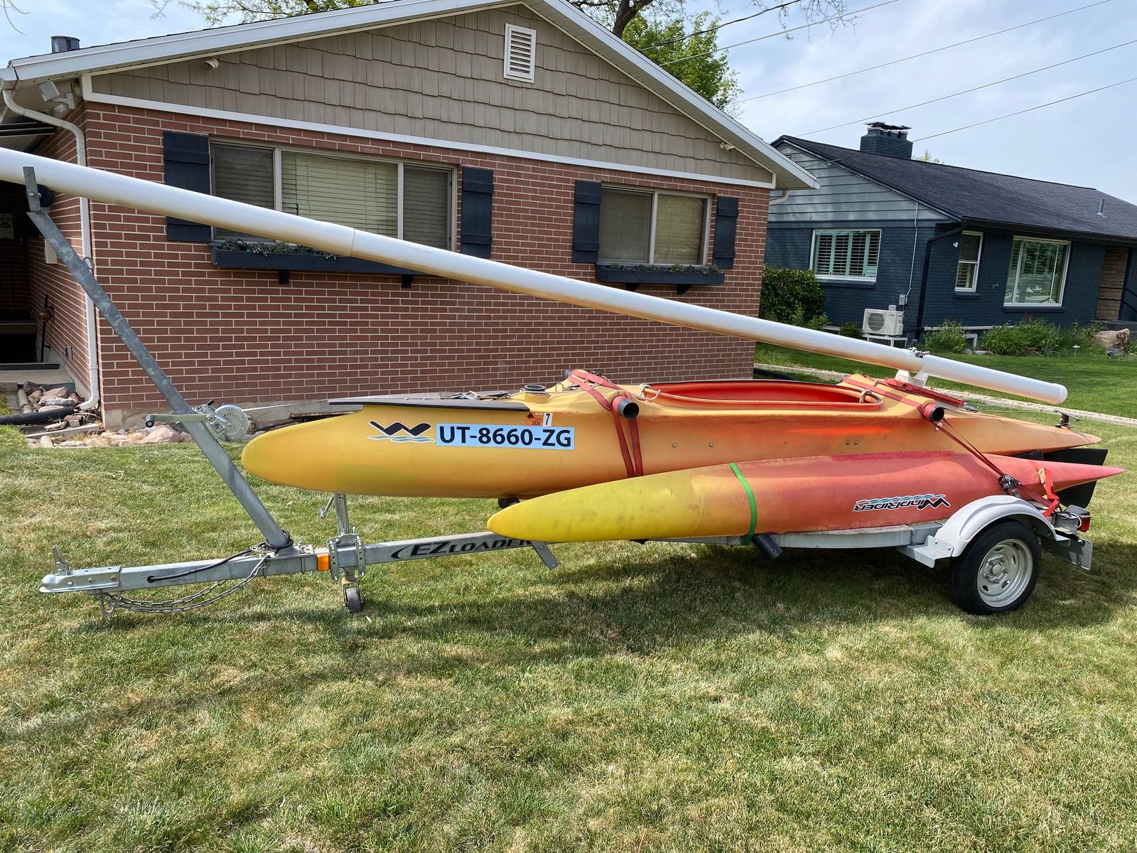 WindRider 16 Trimaran Sailboat + EZ Loader Trailer — Ready for the Lake
