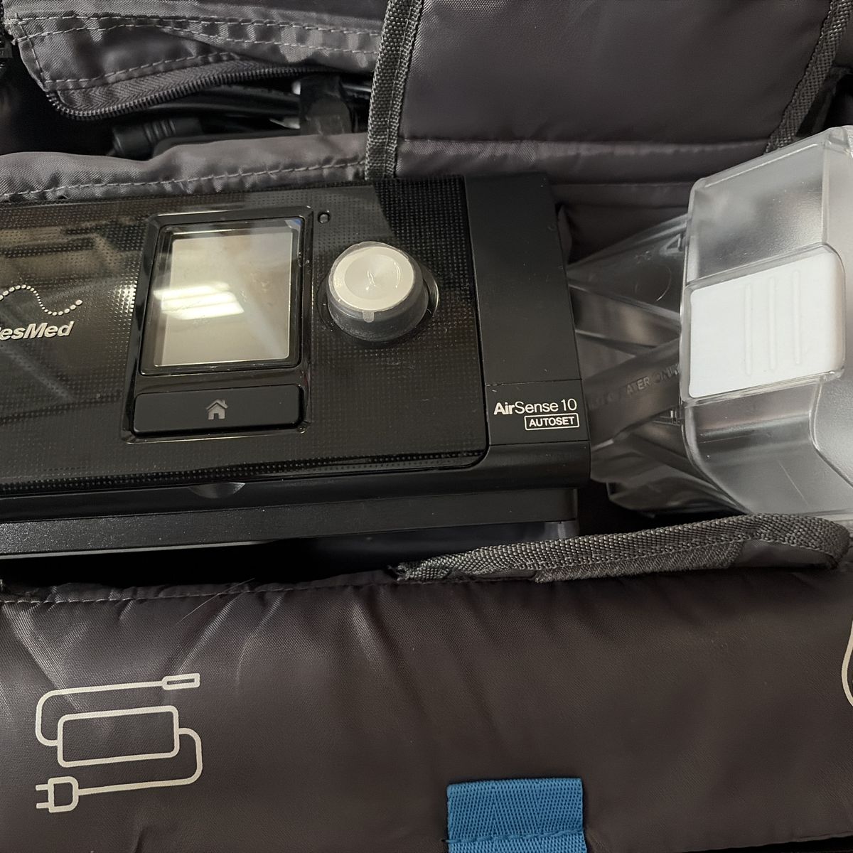 PayPalResMed air sense 10 CPAP machine 11,409 total hours *see pics, in good condition, includes machine with used water tub and new in box 2nd water tub, power cord, NEW filters, mask wipe, NEW face mask cushion size medium, used head gear strap, NEW climate line air cord & 2nd used cord, manuals, carry case