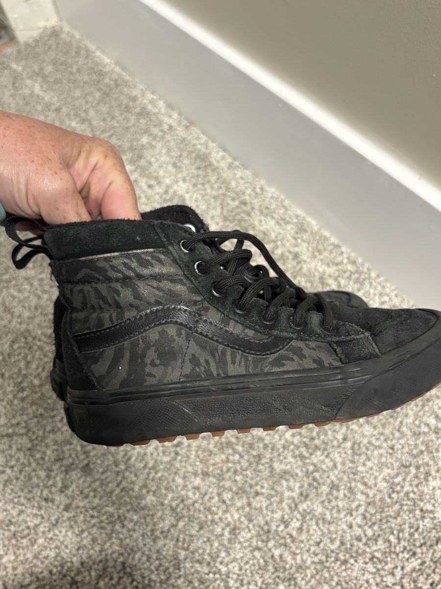 VenmoKid’s size one camo black boots. They have a good sole intact and are solid shoes for that rough outdoor kid. Comes from a clean and smoke free home.