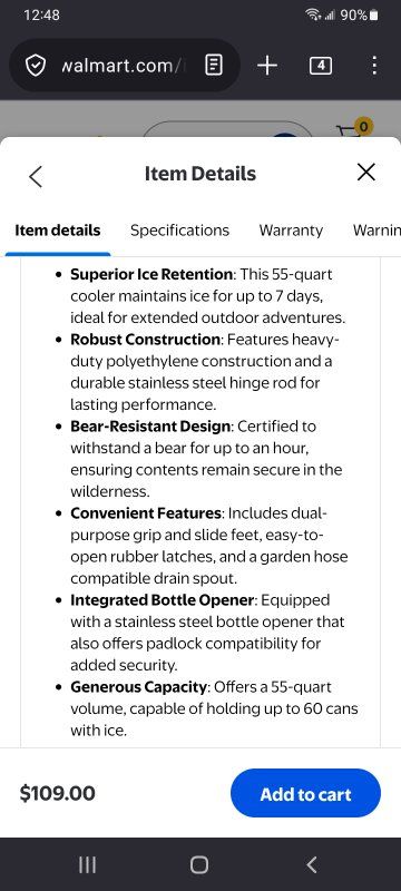 Lifetime cooler in excellent condition 55 Quart/60 cans 7 Day Ice Retention Has bottle cap opener Strong handles for carrying Place for pad lock Bear proof $60 cash If interested please text 801-654-0982