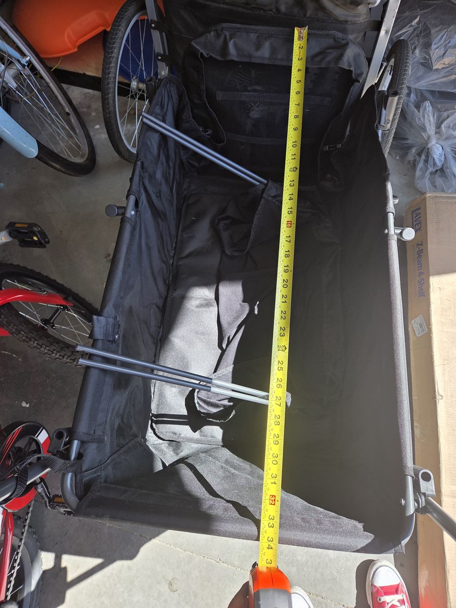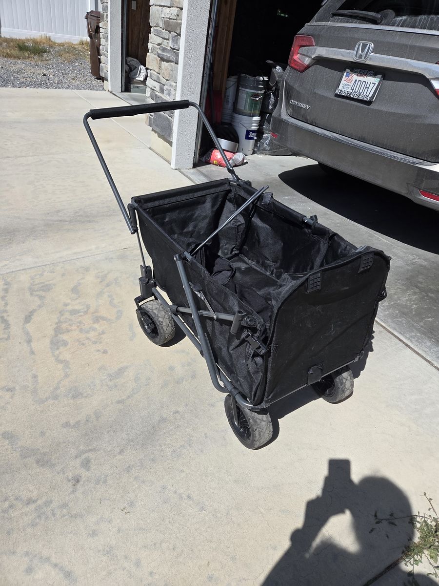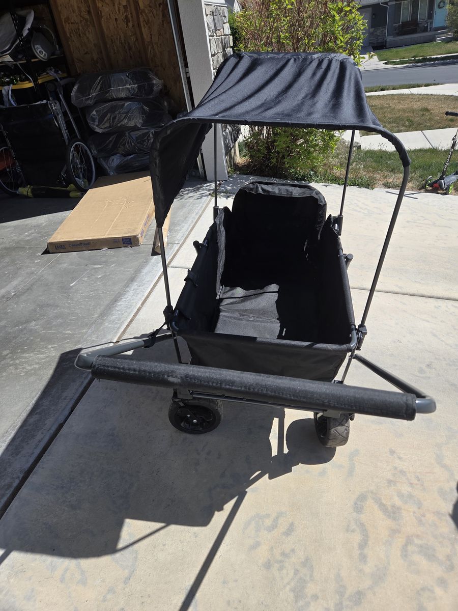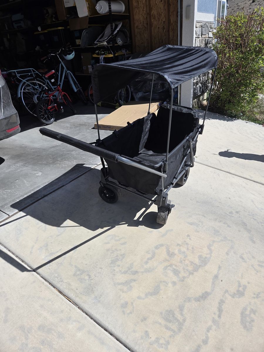 VenmoKids wagon with removal shade canopy. Cargo space for at least 2 kids (we fit our 3). Would be great for kids, pets, groceries, etc. We love it for walks, museums, trick or treating, and other fun family outings. Adding another child to the family so letting this go. No visible wear or tear and truly like new.