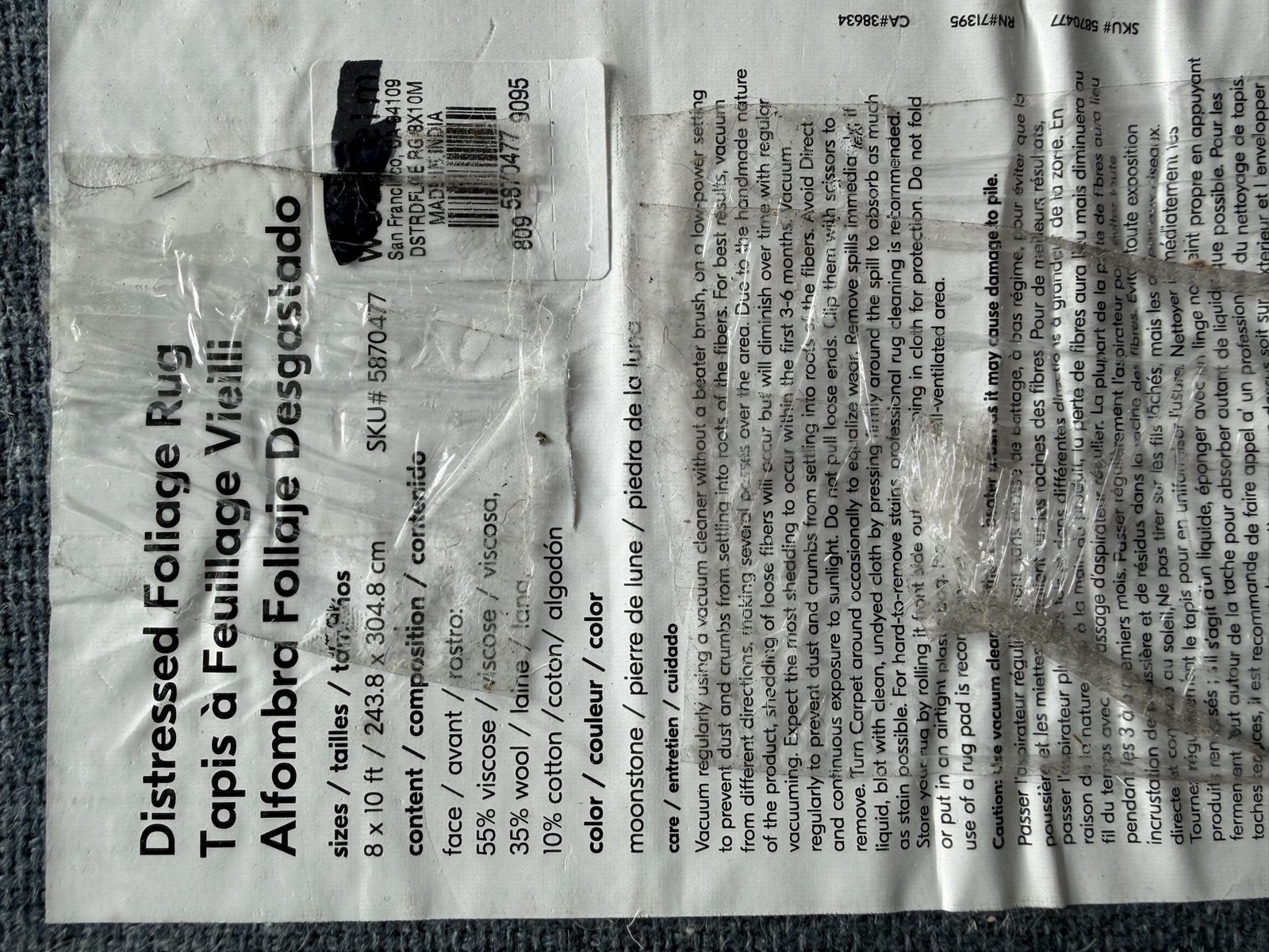 PayPalThis was used in a second home for less than a year and is in great condition! It's a beautiful rug with cream and blue hues. $869 new plus shipping & taxes.