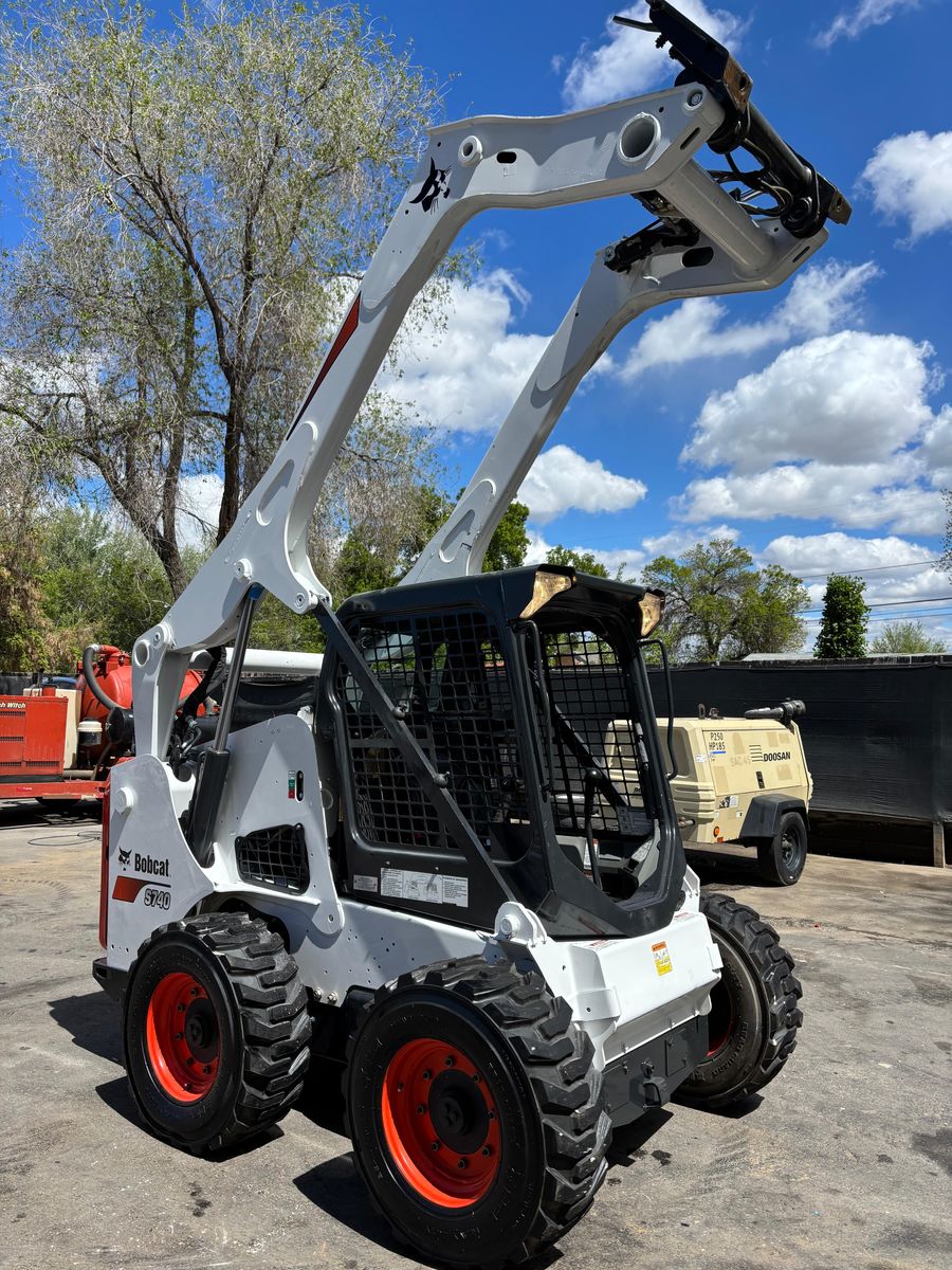 Wheeled skid steers are best for hard surfaces like concrete/asphalt. Compact Track Loaders (CTLs) are preferred for mud, dirt, and uneven terrain, offering lower ground pressure.