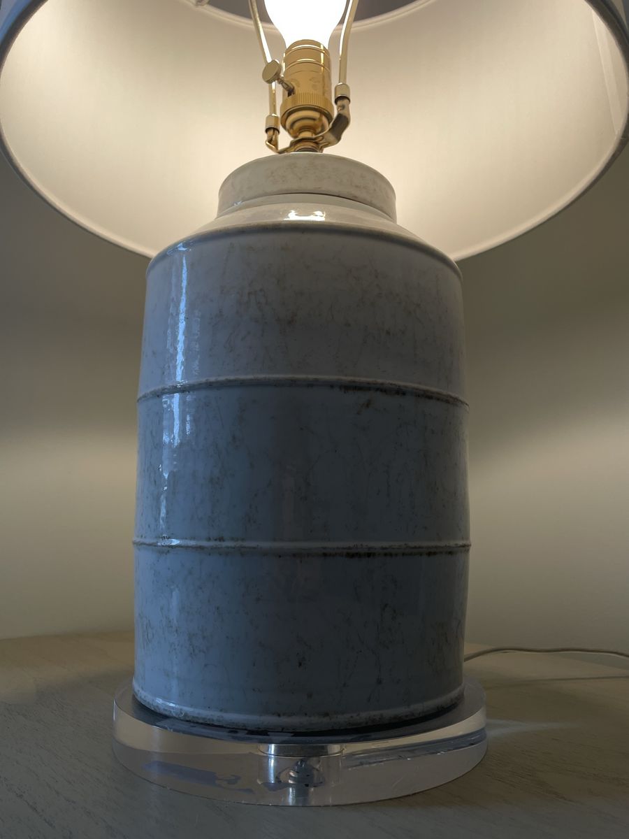ApplePayPerfect condition Global Direct light blue table lamp. They are stable, and have very even light distribution. They have a luxury modern look and feel, and are easy to operate with a 3 way socket switch. 2 available.
