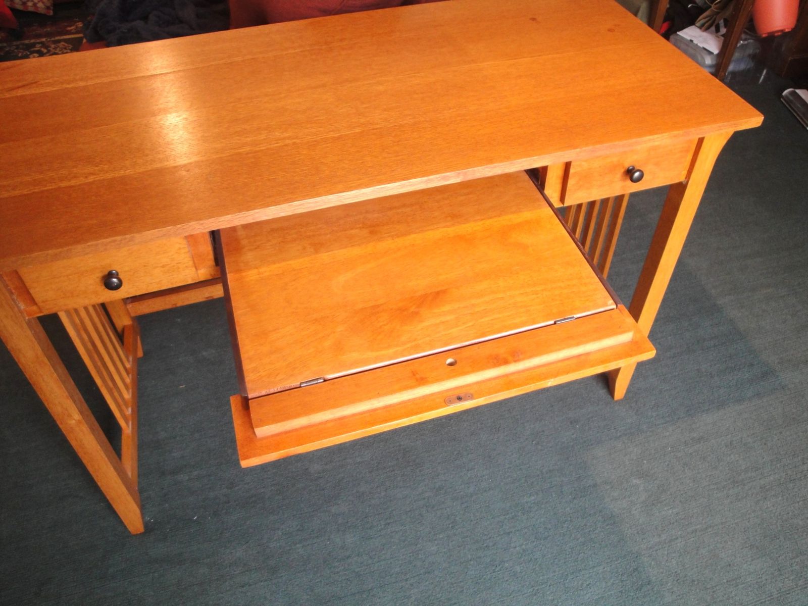 VenmoImagine this Mission Desk in your home office. Certain to proclaim your taste for serious style; this craftsman-style desk is a winner on so many levels. This desk is easy to clean and is outfitted with an attractive keyboard drawer and two smaller drawers to keep your documents and pens in the perfect place. Whether your home's style is mature and Transitional, urban and Contemporary, or cultured and Cosmopolitan, this Mission Desk is the perfect style statement.