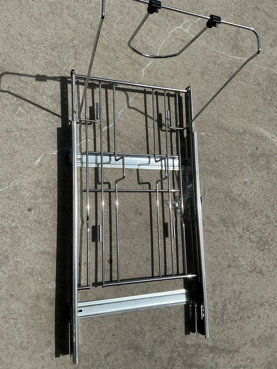 VenmoThis is no longer needed, in good condition, works great. However, in last pic you can see where I cut out a section to fit through a water pipe. Still works great with the cutout. Measured 13.75” wide, 21.5” long, and extends to 42.5”. $15 cash or venmo, trash container in pic is not included.