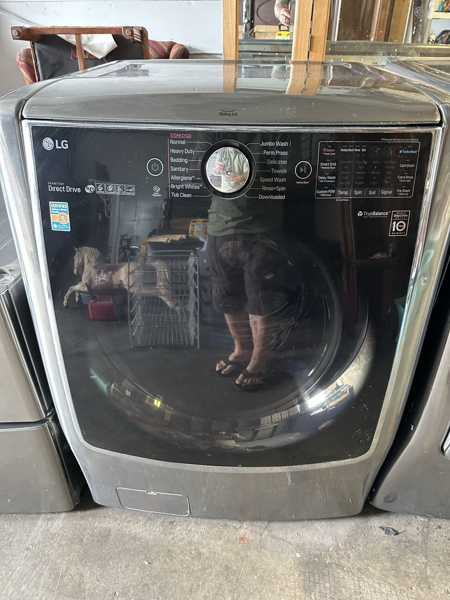 LG 5.2 Cu. Ft. Graphite Steel Front Load Washer & LG 9.0 Cu. Ft. Graphite Steel Front Load Electric Dryer with pedestals. Both work excellent. First come first served. Located in Midvale. Private message me if interested