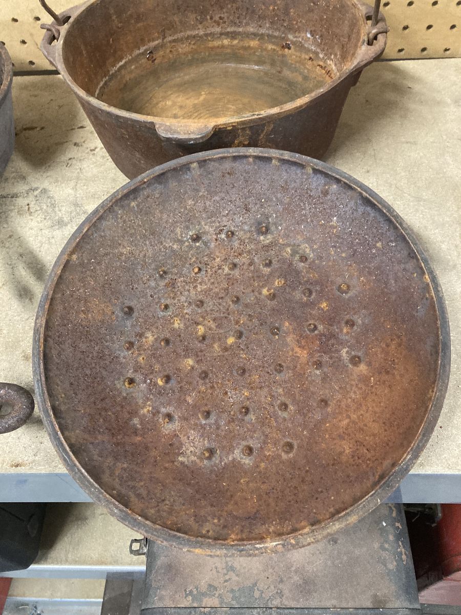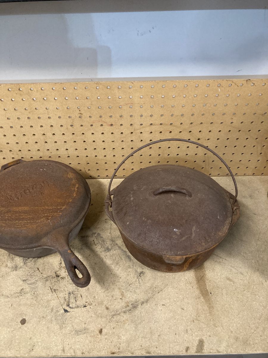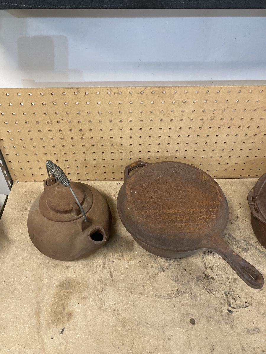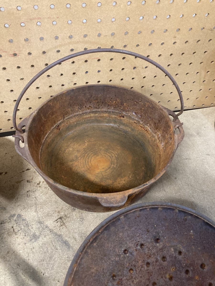 Two styles of Dutch ovens, and a kettle. All three for $80 dollars.