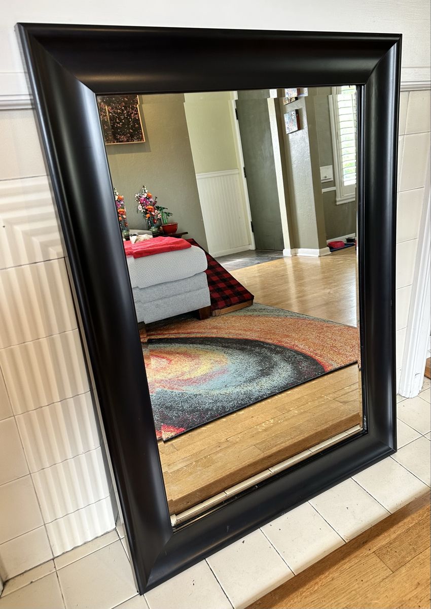 VenmoBlack framed wall mirror, approx. 43 1/4” x 31 1/4”.
