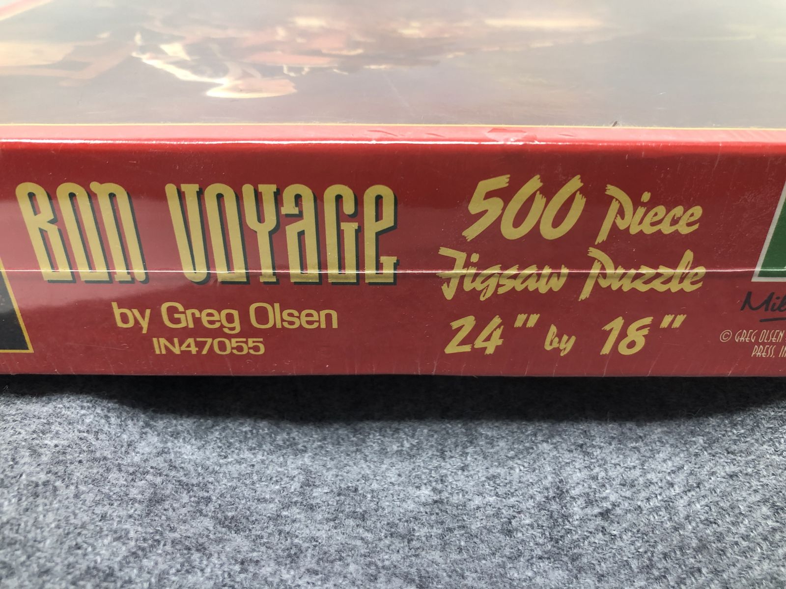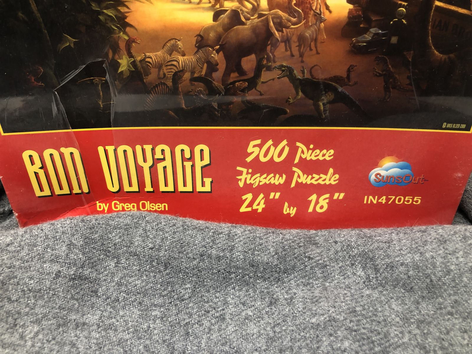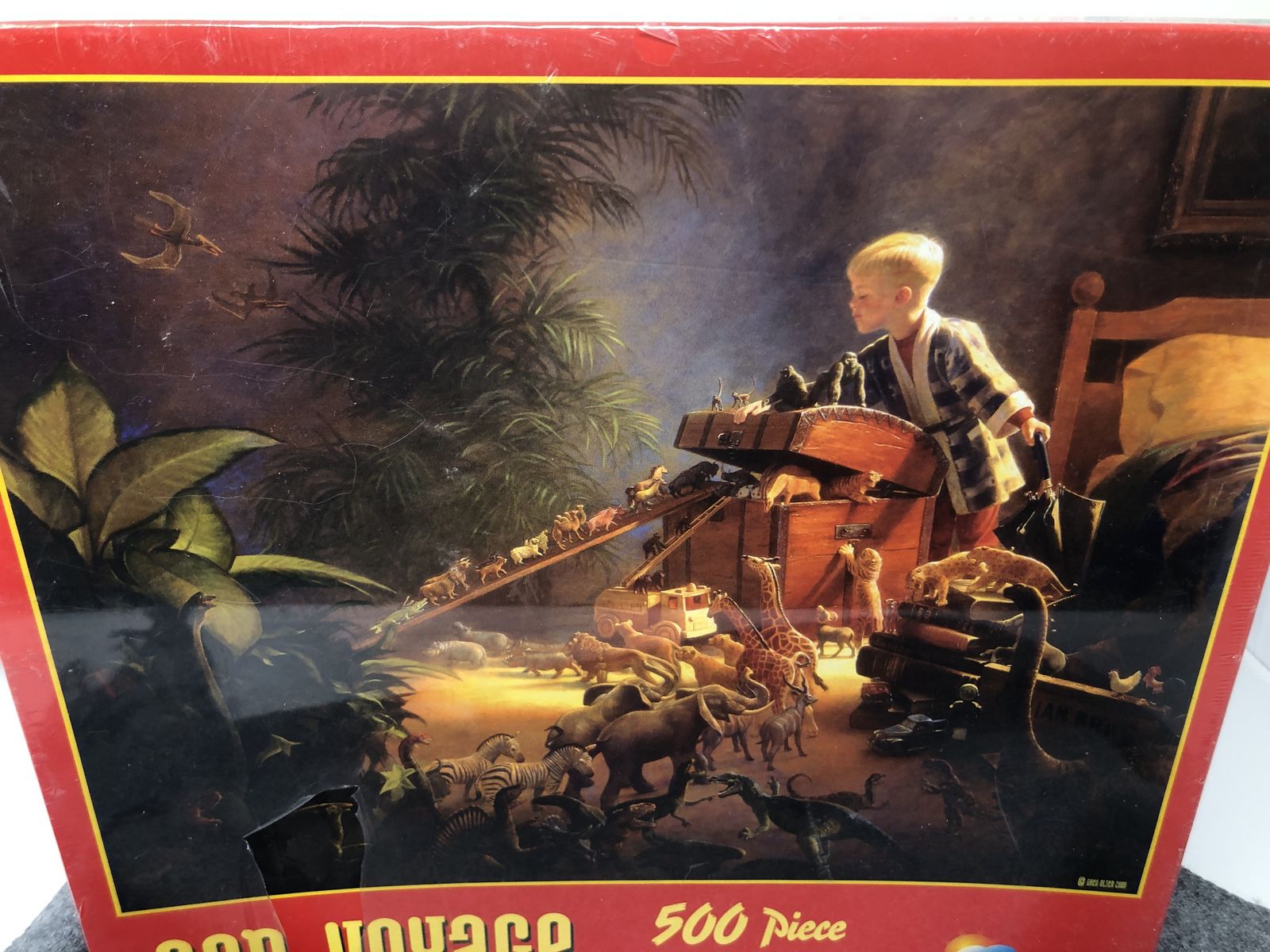 VenmoStep into a world where imagination comes to life! This stunning SunsOut jigsaw puzzle features the enchanting artwork of Greg Olsen, titled "Bon Voyage." The scene captures a young boy’s bedroom transformed by wonder. As he opens an old wooden trunk, a parade of animals—from majestic giraffes and elephants to prehistoric dinosaurs—embarks on a magical journey through a lush, indoor jungle. The warm, nostalgic lighting and rich detail make this more than just a puzzle; it’s a beautiful piece of art waiting to be assembled.