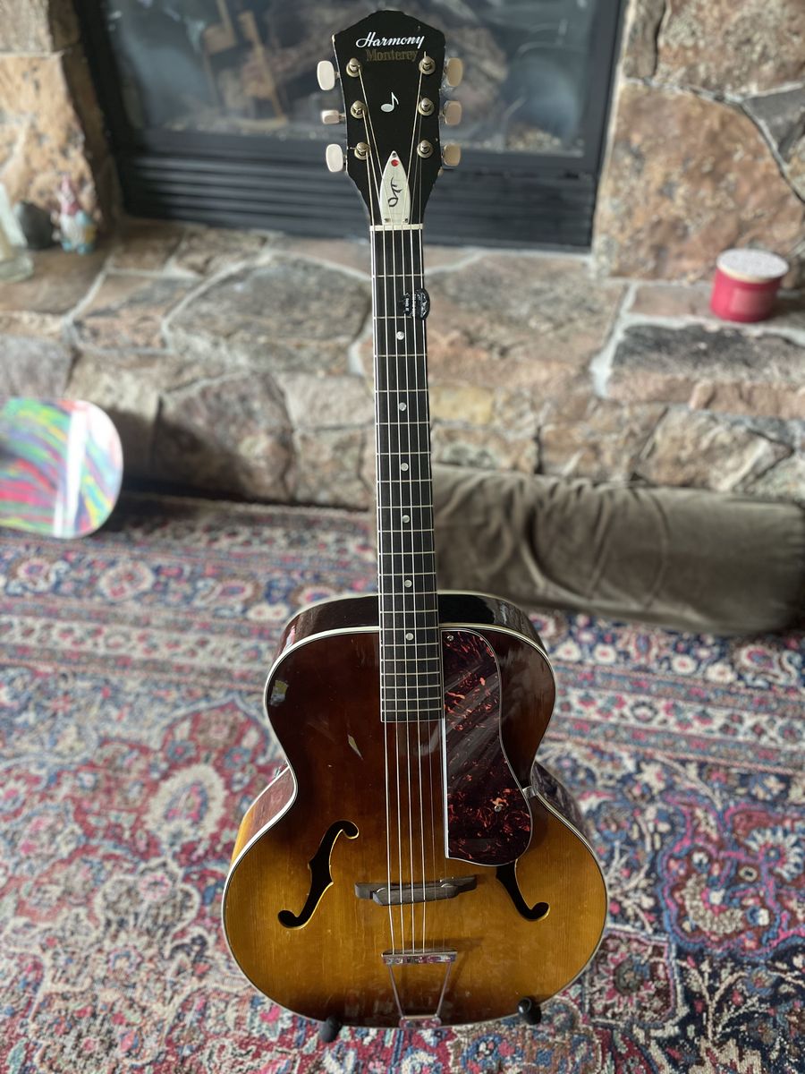 VenmoBeautiful and Very Clean Harmony from 1963. Previous owner replaced tuners and pick guard. Very Playable, Low action and no cracks. S-63 date stamp #2933H1325. Bound fret board.