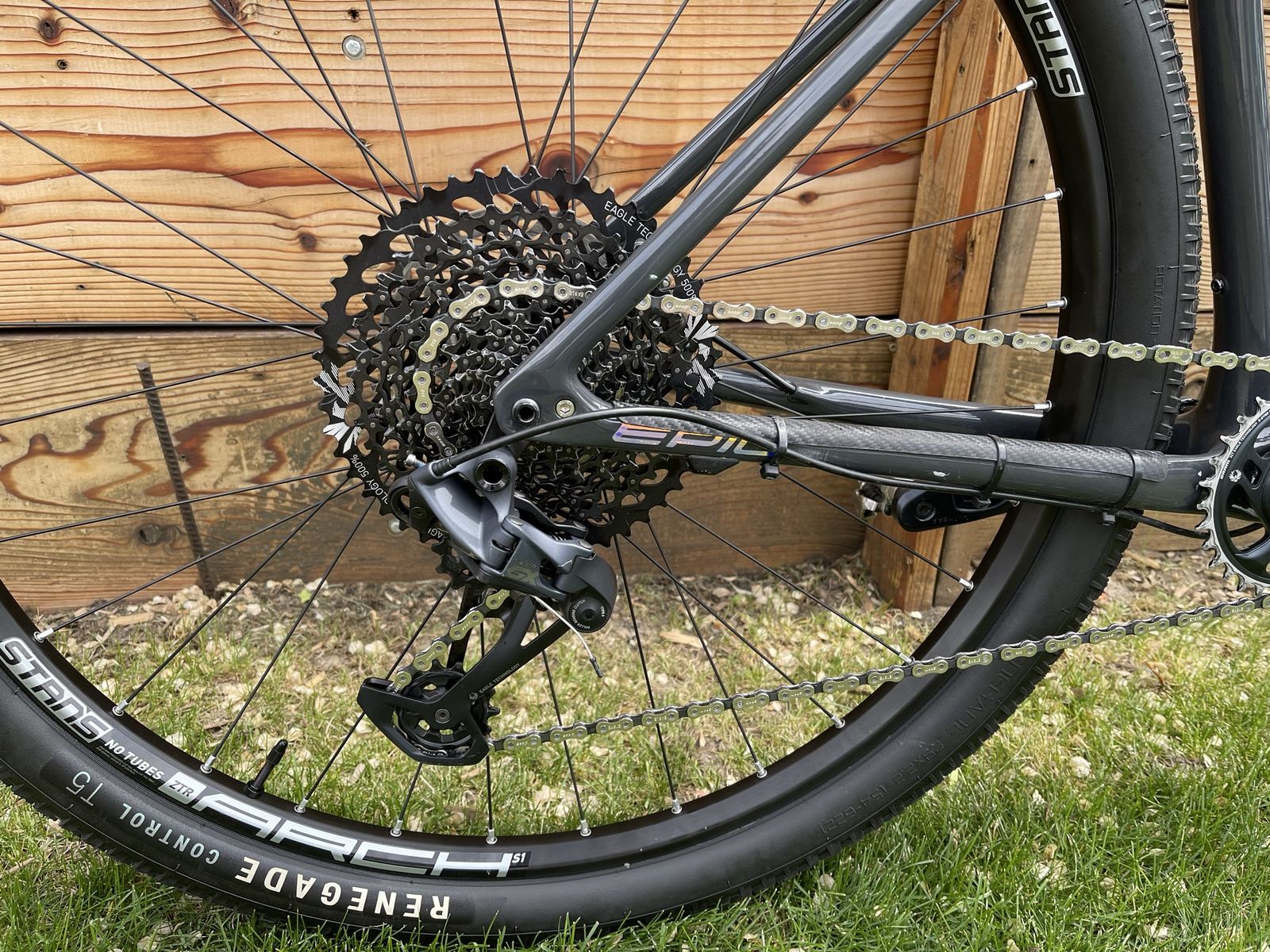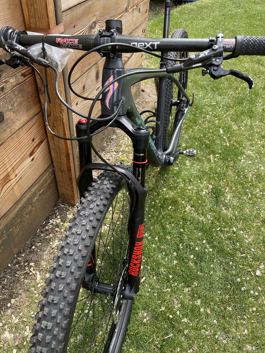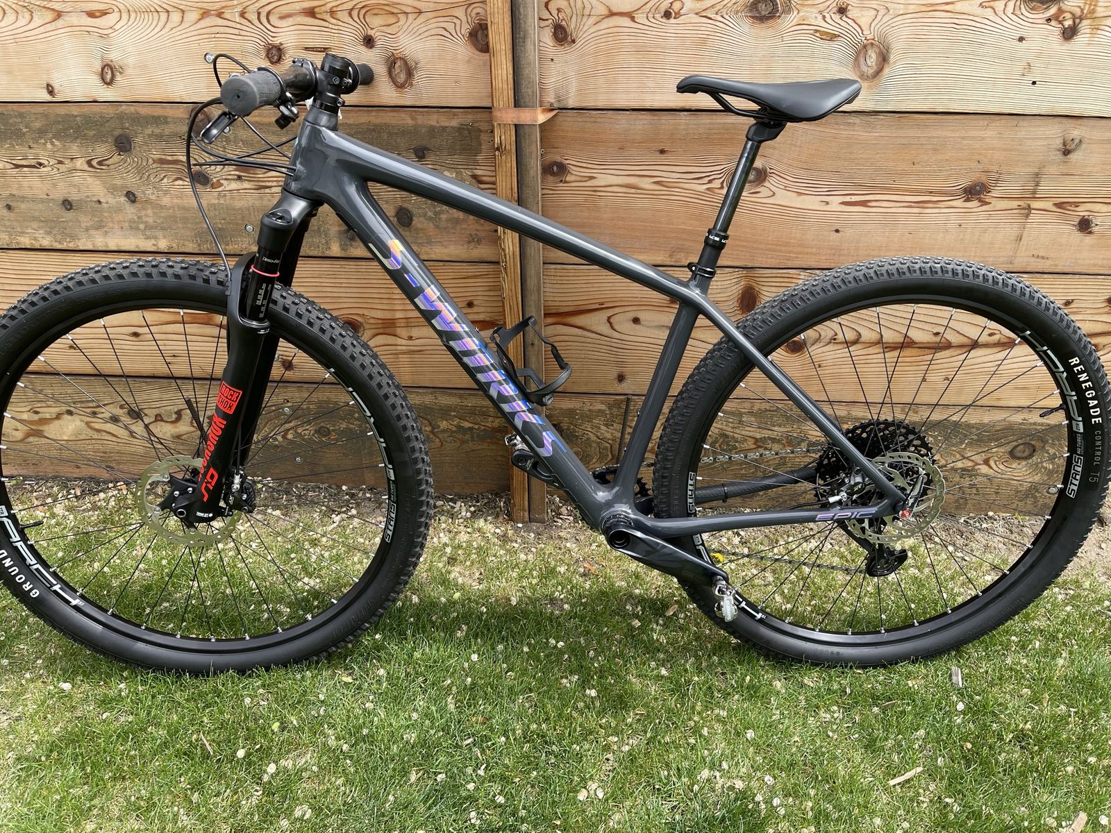 Rockshox SID Brain 100mm Fork Stan’s Arch Wheels with NEO Hubs Specialized Ground Control/Renegade Tires SRAM GX 12-Speed Eagle Drivetrain SRAM X0 Twist Shifter (can swap for a GX trigger if preferred) KS 120mm Dropper Post RaceFace NEXT Carbon Flat Bar Shimano XT Brakes Specialized Power Comp Saddle Shimano Clipless Pedals with Cleats
