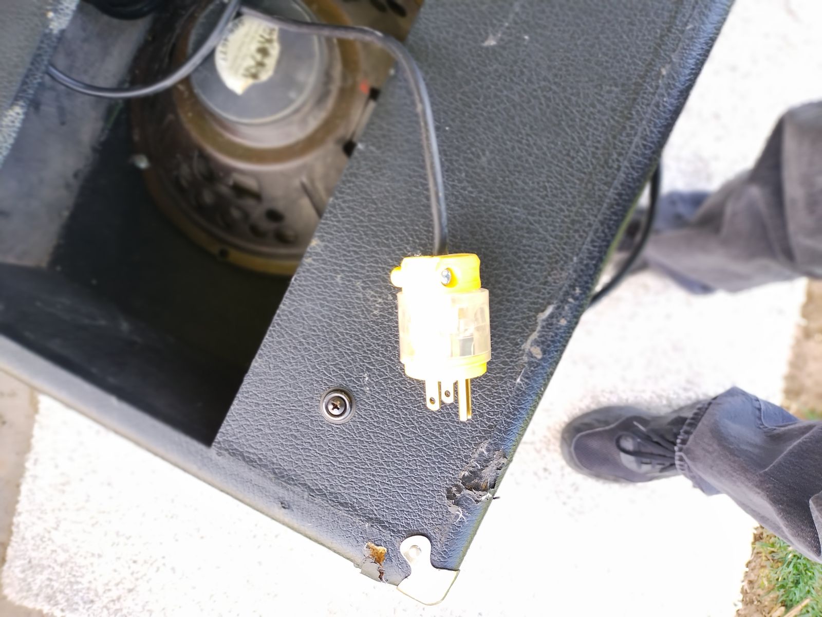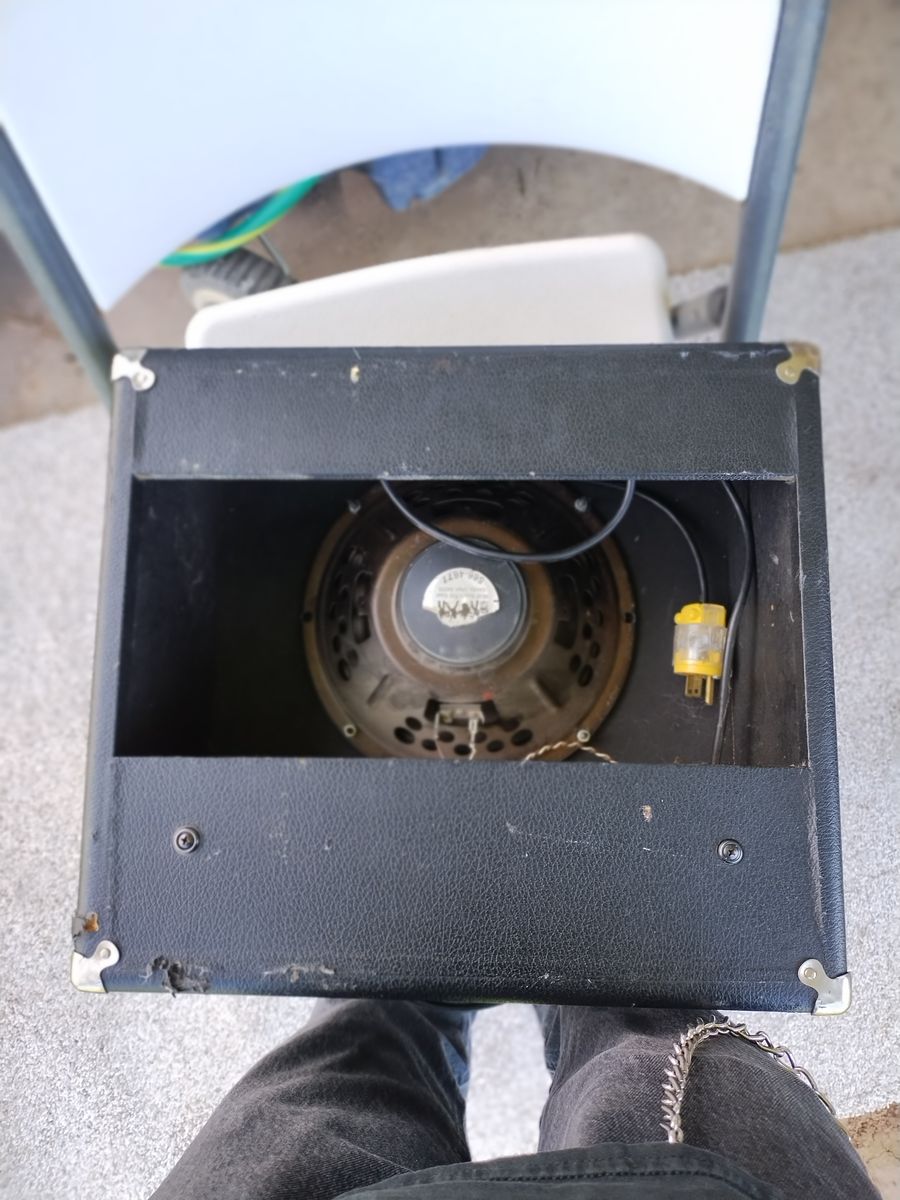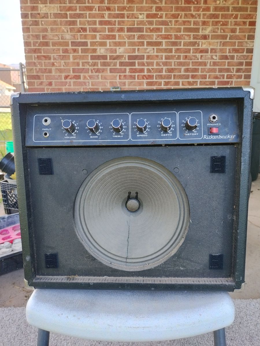 VenmoFor refurbish, plays and powers on just fine, small rip in speaker. Replaced plug end. Two channels, one clean, and one for distortion. 1970s, 80s
