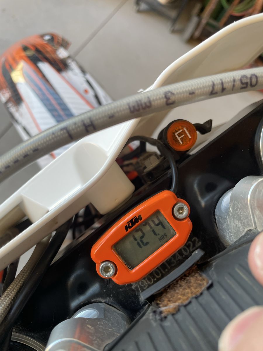 I think there is only 127 hrs on the bike. (See picture) fresh service and ready to go.
