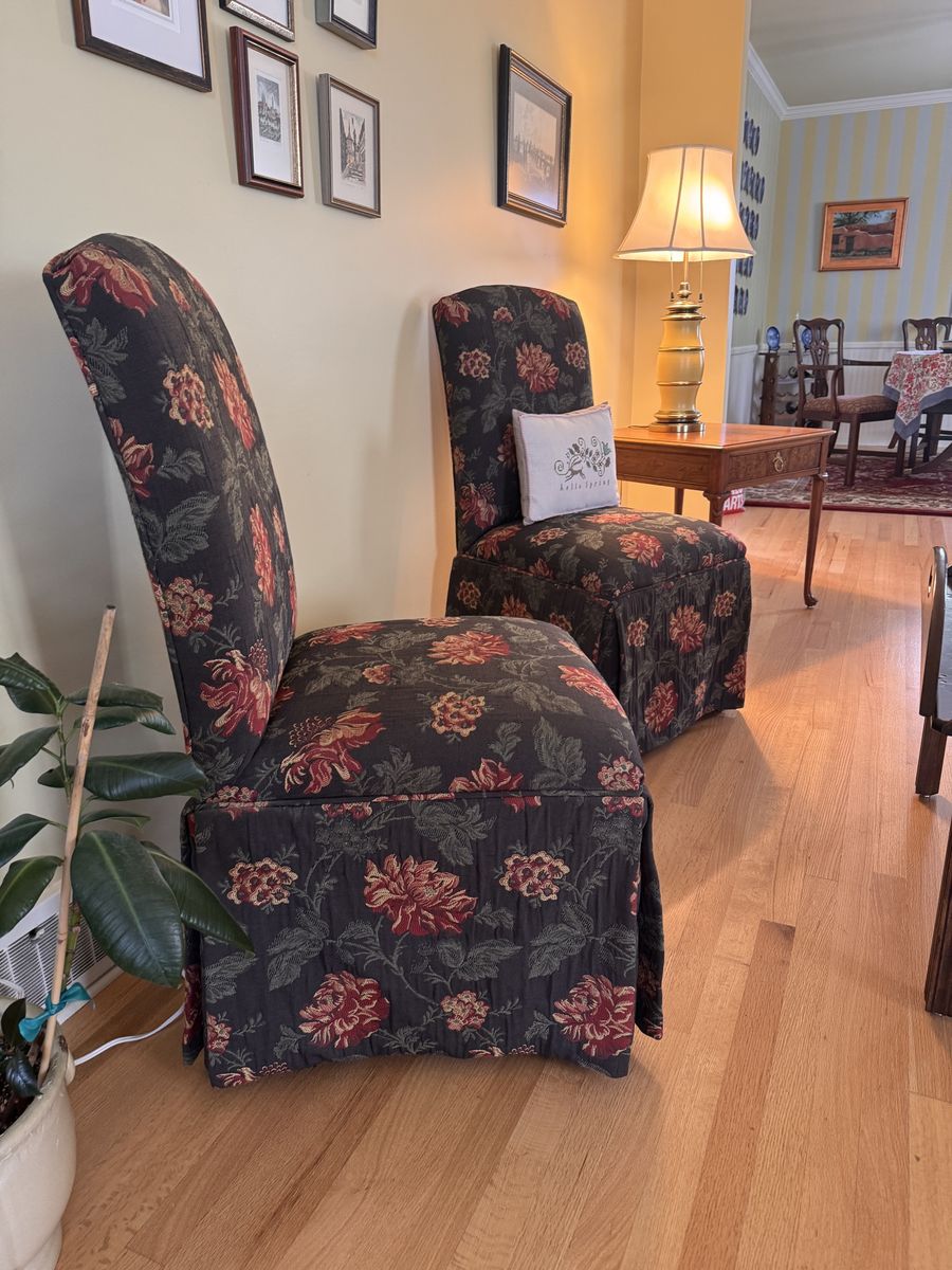 VenmoThese chairs are custom upholstered and come from a smoke and pet free home. They would make the perfect accent to any formal dining or living room and have the potential to become the main event in your space as well. All prices negotiable.