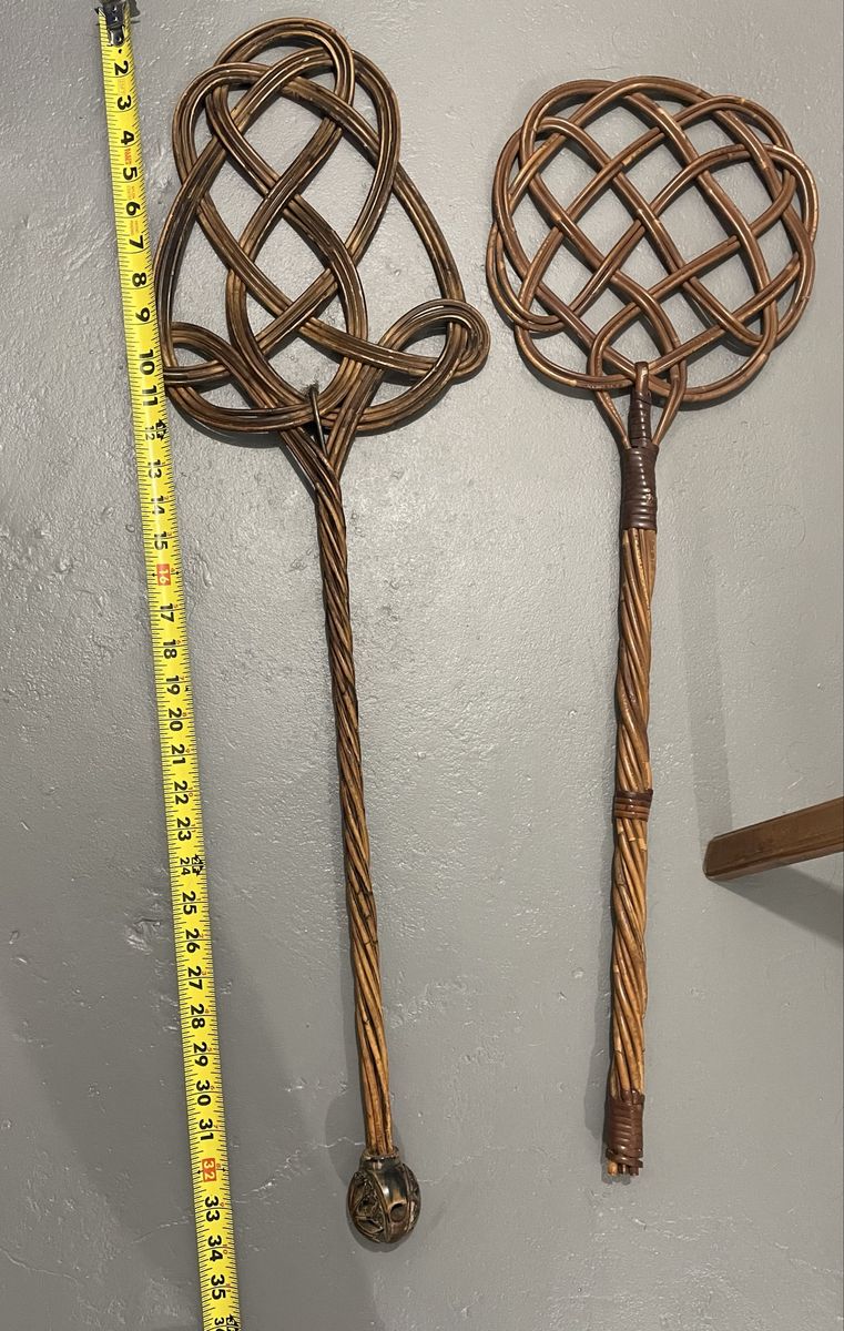ZelleVintage wicker rattan carpet beaters, set of 2. Could be used for wall decor or novel project. 1 missing end wooden knot. In fairly good shape overall. Asking 40$, if interested please text. Thanks