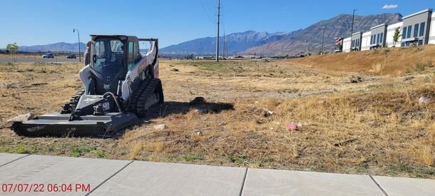 We offer concrete flatwork, shed pads, RV pads, walkways, patio bases, excavation, lot clearing, brush removal, firebreaks, trail clearing, mulching, yard cleanups, and xeriscape preparation. We also handle large-scale vegetation control for farms, industrial sites, utility properties, and solar fields.