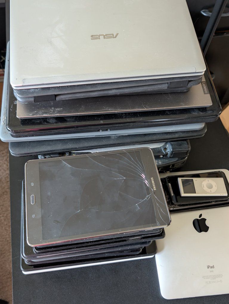 INCLUDES Total of 19 electronic devices including: (9) Tablets, (3) E-Readers, (3) Chromebooks, (3) Smartphones, and (1) Apple device. NOT INCLUDED Charging cables, power adapters, SIM cards, or original packaging.