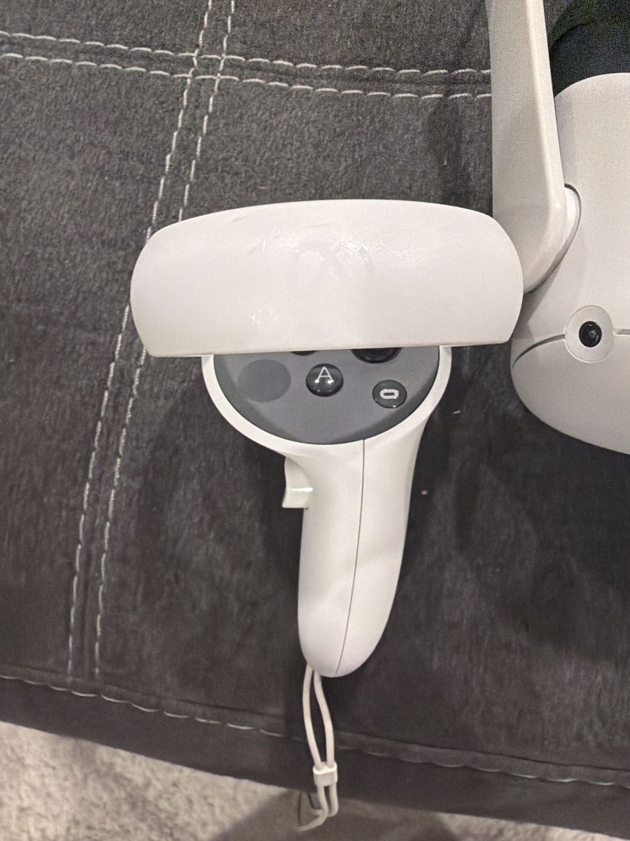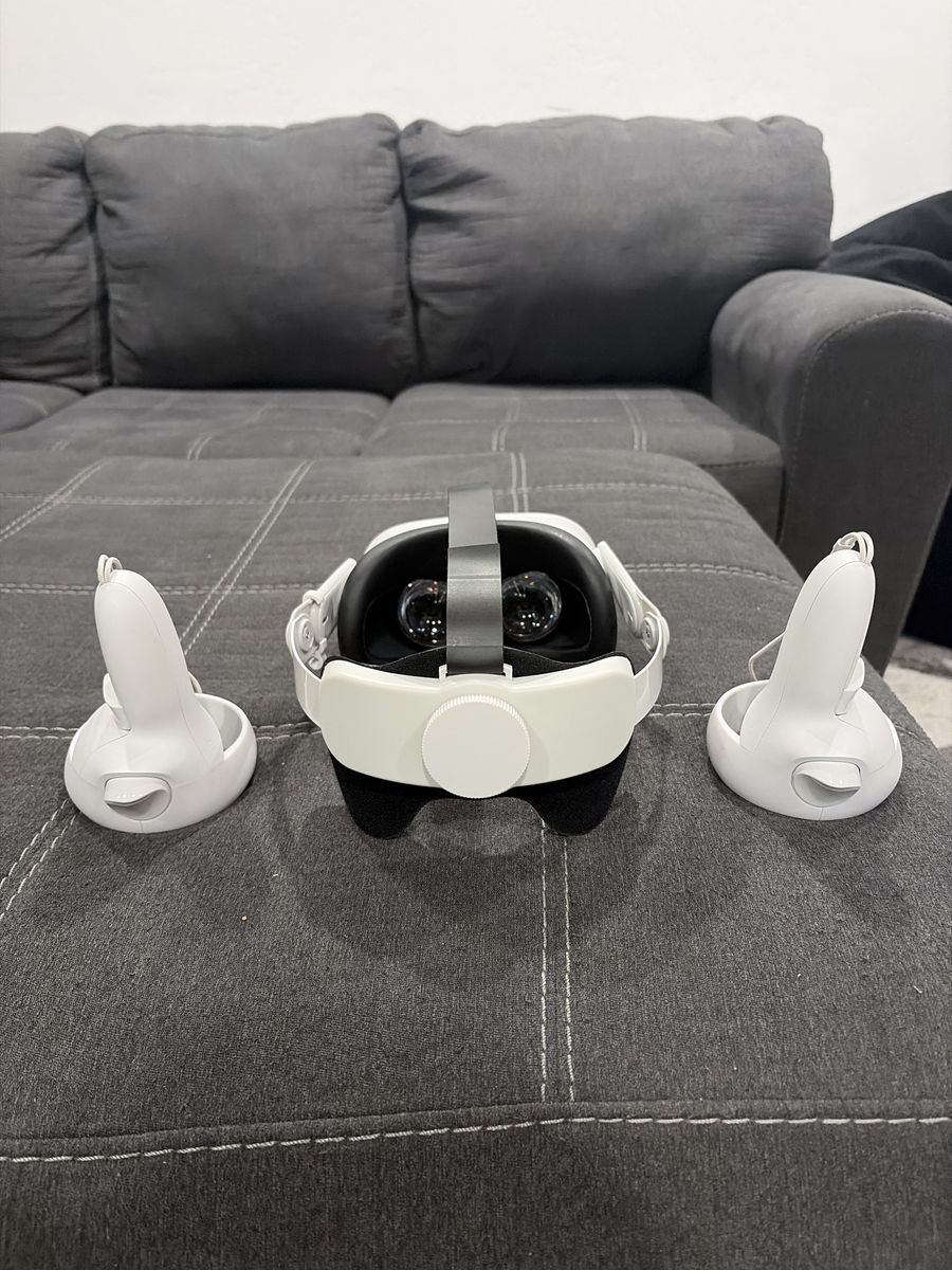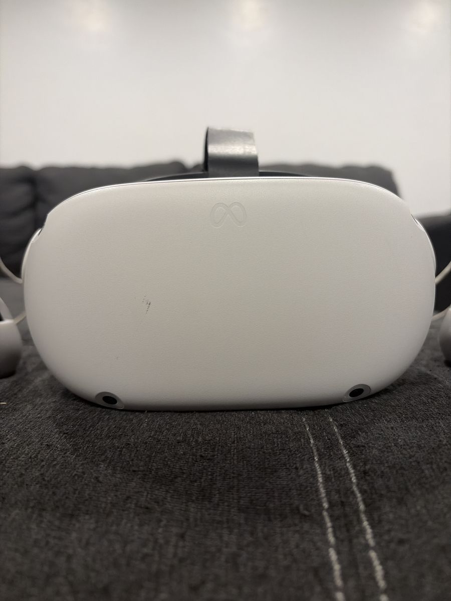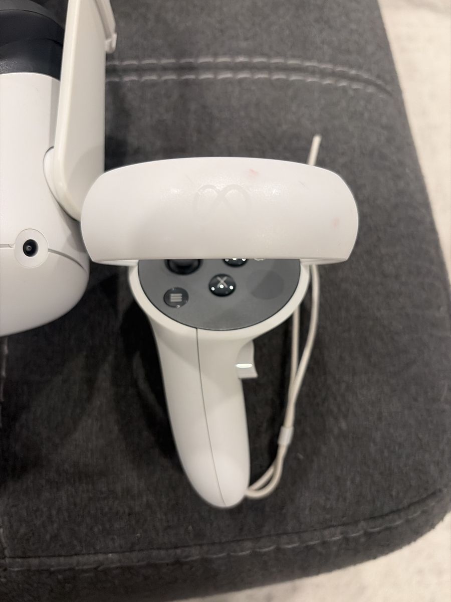 This thing works great, I put a new head strap on it for more comfort and you can definitely tell a difference. It is in great shape there is one smudge of black on the front of the head set nothing that can ruin the headset’s performance at all. A few smudges on the controllers as well nothing that affects their performance either. It also comes with a charger. It comes with the original box as well