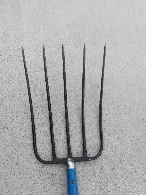 My brother bought this 5-tine pitchfork several years ago at a Feed and Hardware store near his cabin in Montana to move straw around the barn that he had chickens and a couple of cows in.