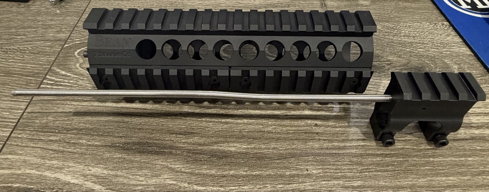 PayPalBean Firearms Carbine Length Quad Rail with gas block and gas tube for AR 15. Comes with barrel nut. 2 complete systems available.