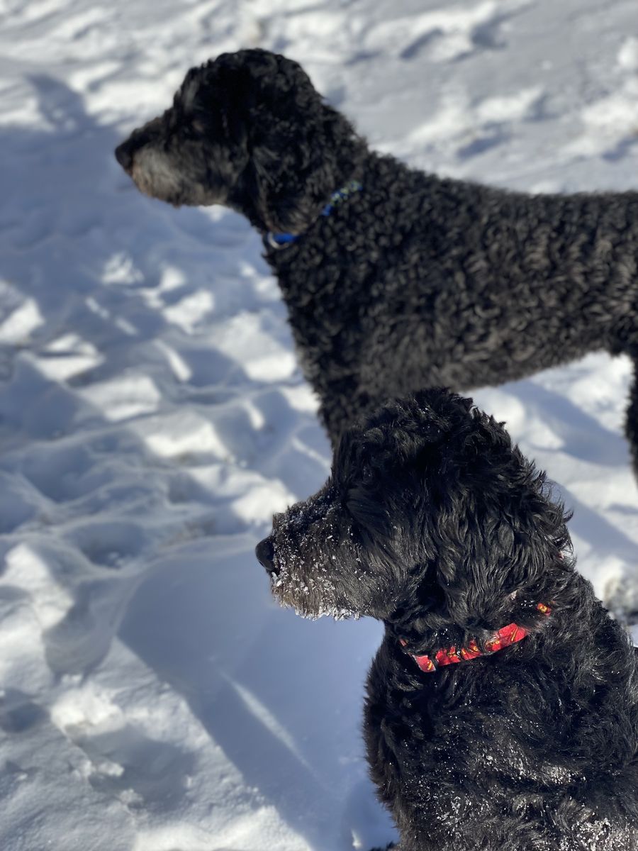 VenmoBonnie and Clyde are six year old litter mates. A mix of Old English Sheepdog and Standard Poodle. They're smart, very affectionate, playful, and good natured. They've grown up together and are deeply bonded.