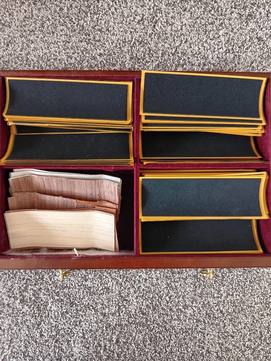Cut each veneer in half to get 2 sheets of the right size.