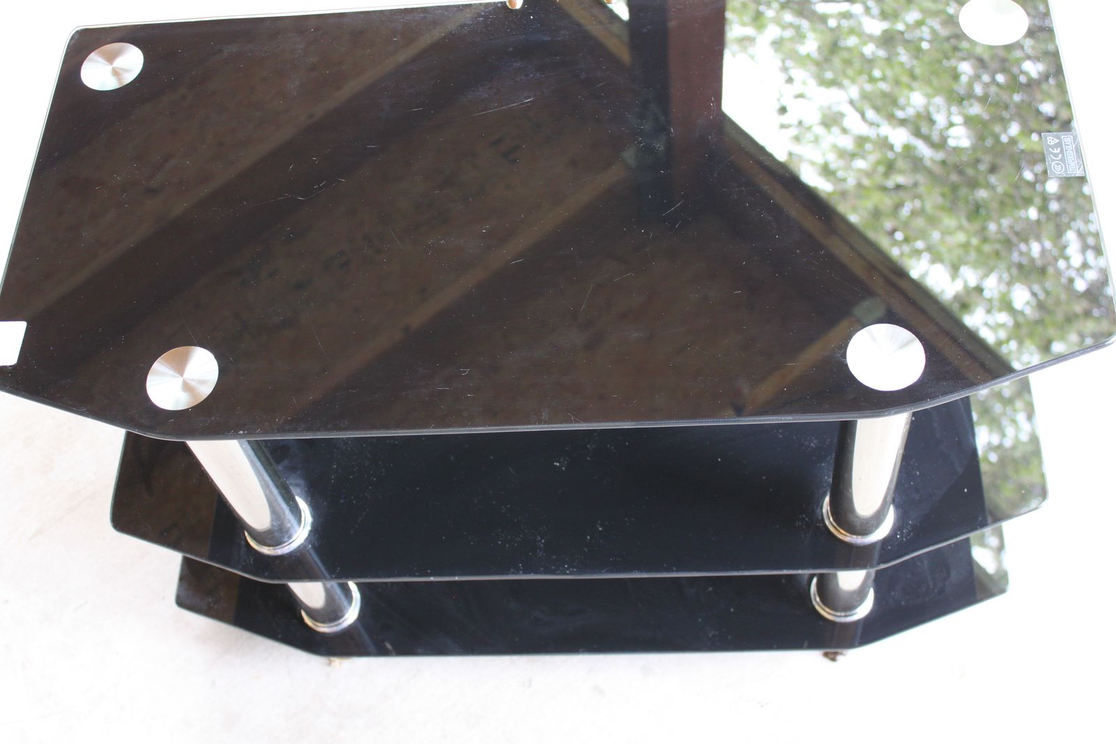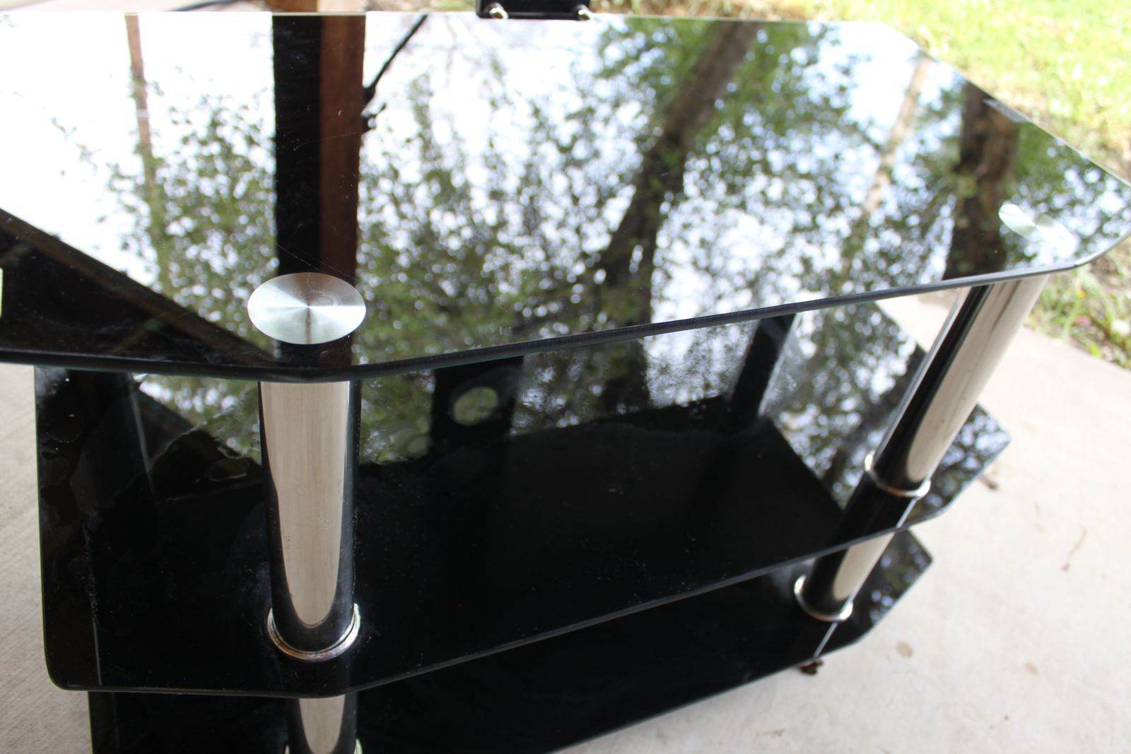 VenmoAVF Classic Corner TV/Audio Stand, 3-Tier Black Tempered Glass Entertainment Center with Cable Management, Chrome Legs, 31.5 Inch Wide ( 31.5x15.5x20)
