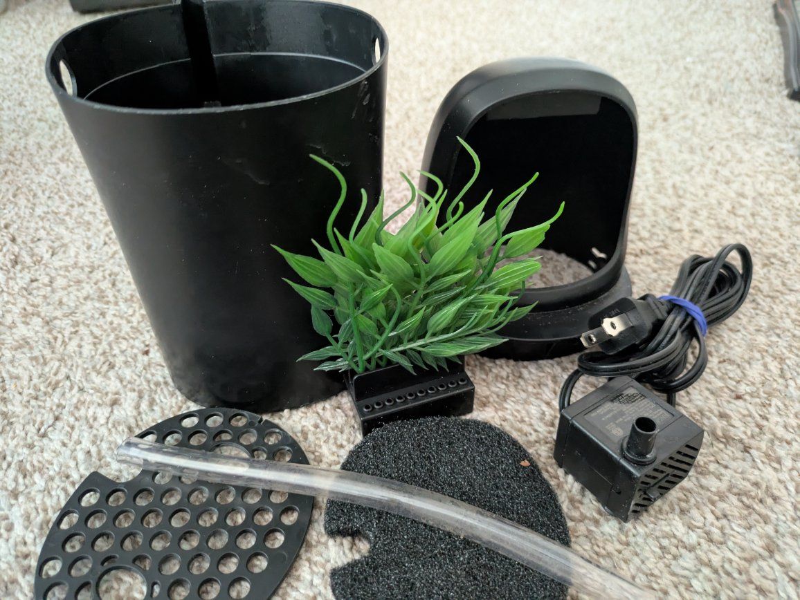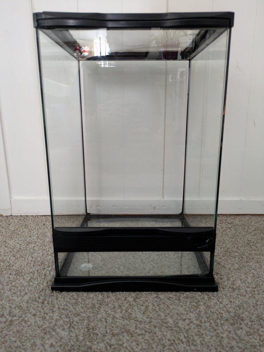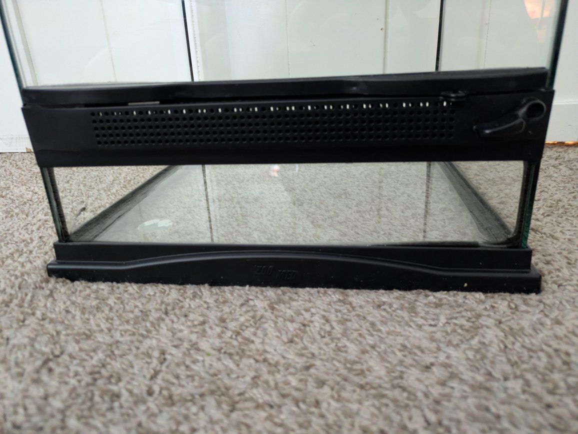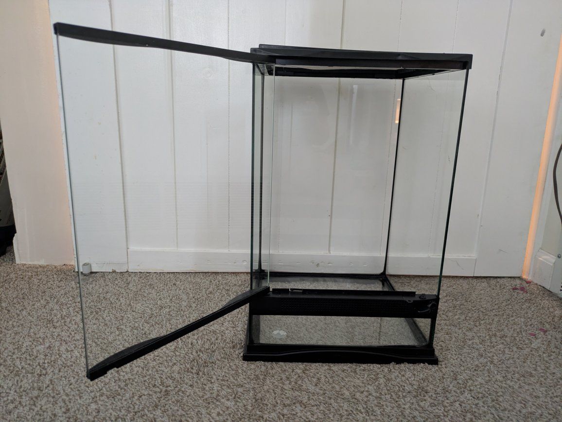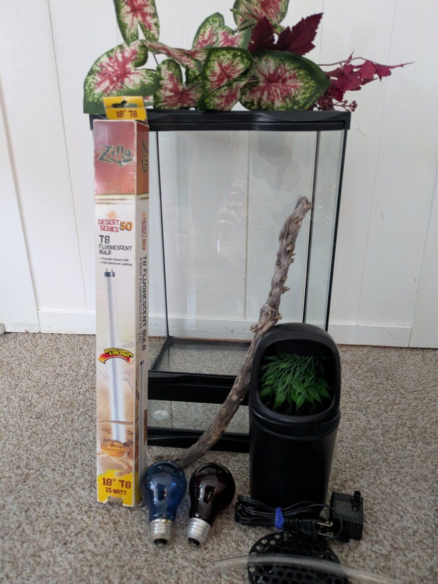 VenmoThis is a zoo med 12x12x18 vertical terrarium. comes with a 18-in UVB light bulb. Day light basking bulb and night time bulb. Comes with the waterfall and a few other decor. I have never used the t8 light bulb so I don't know exactly if it's been used or not when I bought it. The top screen has a little melted spot on the plastic as I put too hot of a light on it at one time. it's minimal. it was used for a month because my chameleon didn't fit . Enjoy!