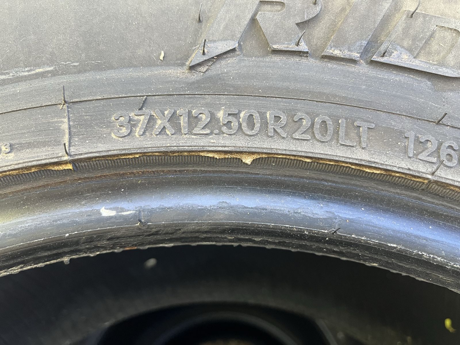 Nitto Ridge grapplers. I'm not a used tire hustler. I bought these to go on a project truck I'm building. I decided to run 35" tires instead. These are about worn out but could still run the summer. Best tire is borderline 8/32nd worst is 5/32nd.