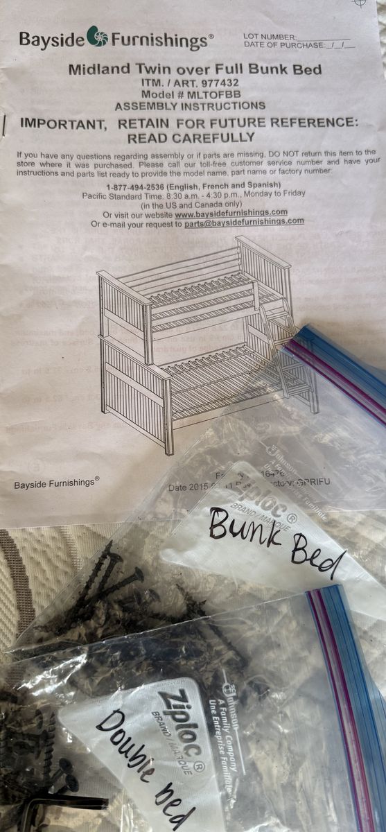 Assembly instructions included. Beds currently assembled for your inspection and ready to transport to new home.