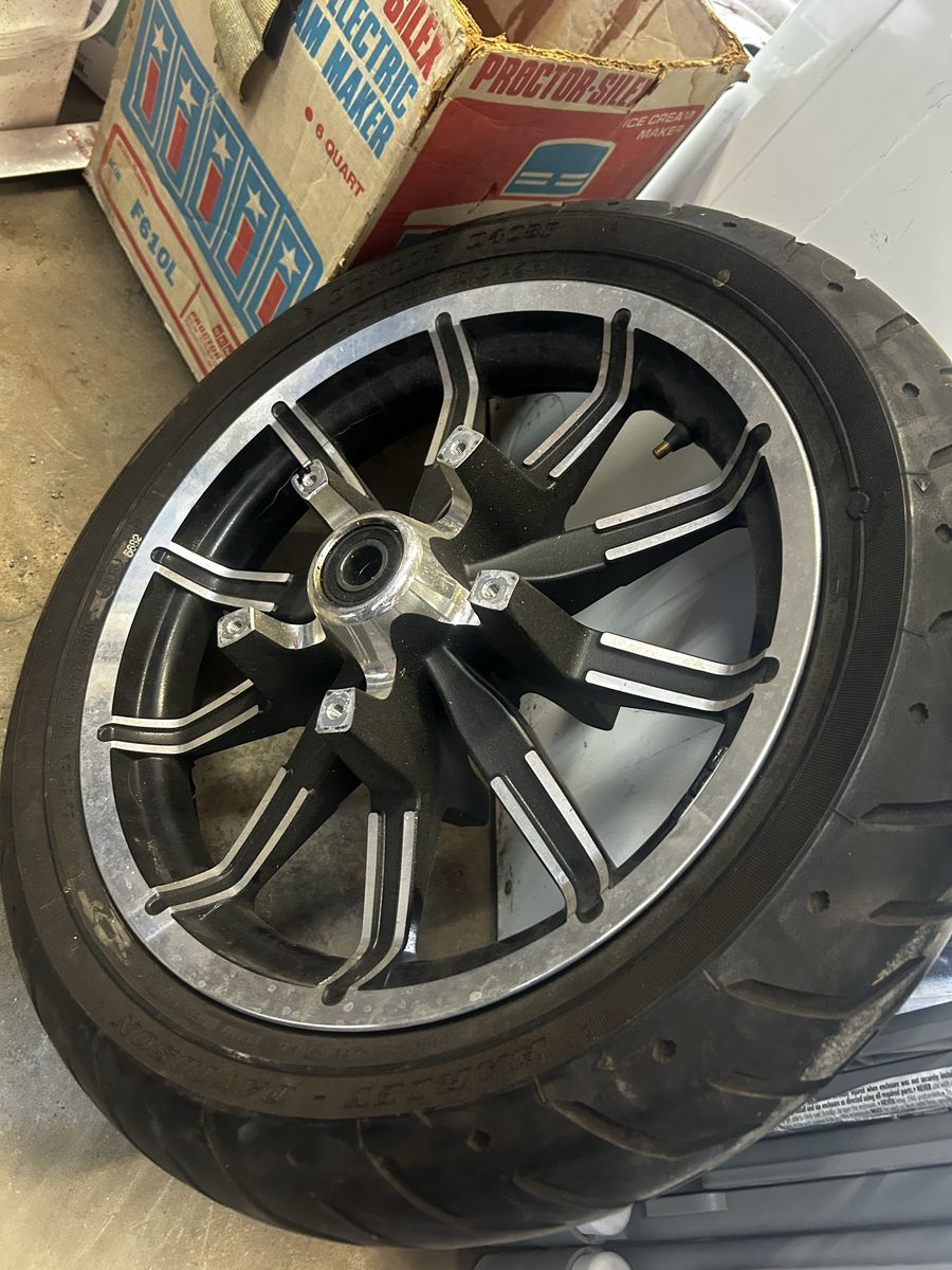 PayPalNew used takeoff Harley front wheel size 130 80 B 17. It has a Dunlop on it has plenty of tread left on it asking $ 200 or best offer. I believe it came off of 2010 Harley Davidson ultra classic . Text is best as I do not look at my listings very often. No codes no scammers I’m retired and I have plenty of time to screw with you back. Just be honest.