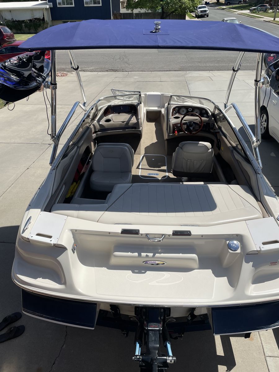 For Sale a well maintained and very good condition open bow LSR REGAL 1900. We are the second owners and purchased this boat in 2008. It has been a blast and has been very reliable. It has the 4.3l Mercruiser Inboard/ outboard and will get a skier or wake boarder out of the water with ease. Spare prop and a few other parts are included, as well as wake boards, skis and life jackets. The only thing that doesn't read correctly is the tachometer. No rips or tears in seats or carpets, has a new cock pit cover and a huge Bimini on the wake tower. Stereo and amp included, would need a new sub. Wake board mounts, and required emergency gear included. Trailer is a 2005 and is in good condition. Wheel bearing were replaced 2 years ago and the boat has only been out twice since then. Spare tire included. Kids are grown and gone and this boat needs a new family that will love it and continue making memories with it. Has been kept under a full cover or in covered storage every winter since we've owned. If this is in your price range it's a must see, get ready for summer fun!