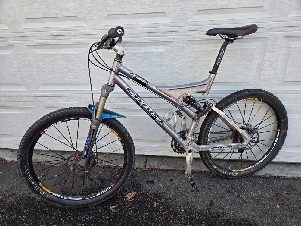 Venmo26" full suspension mountain bike with tubeless tires, nice wheels, disc brakes, Shimano XT components, Chris King headset and Fox front suspension size is medium large, rear shock is good to go. If you are really interested in it please ask a real question not "is it available", venmo and cash accepted when you pick the bike up in person. This bike would make a good beginning bike for someone trying highschool racing.