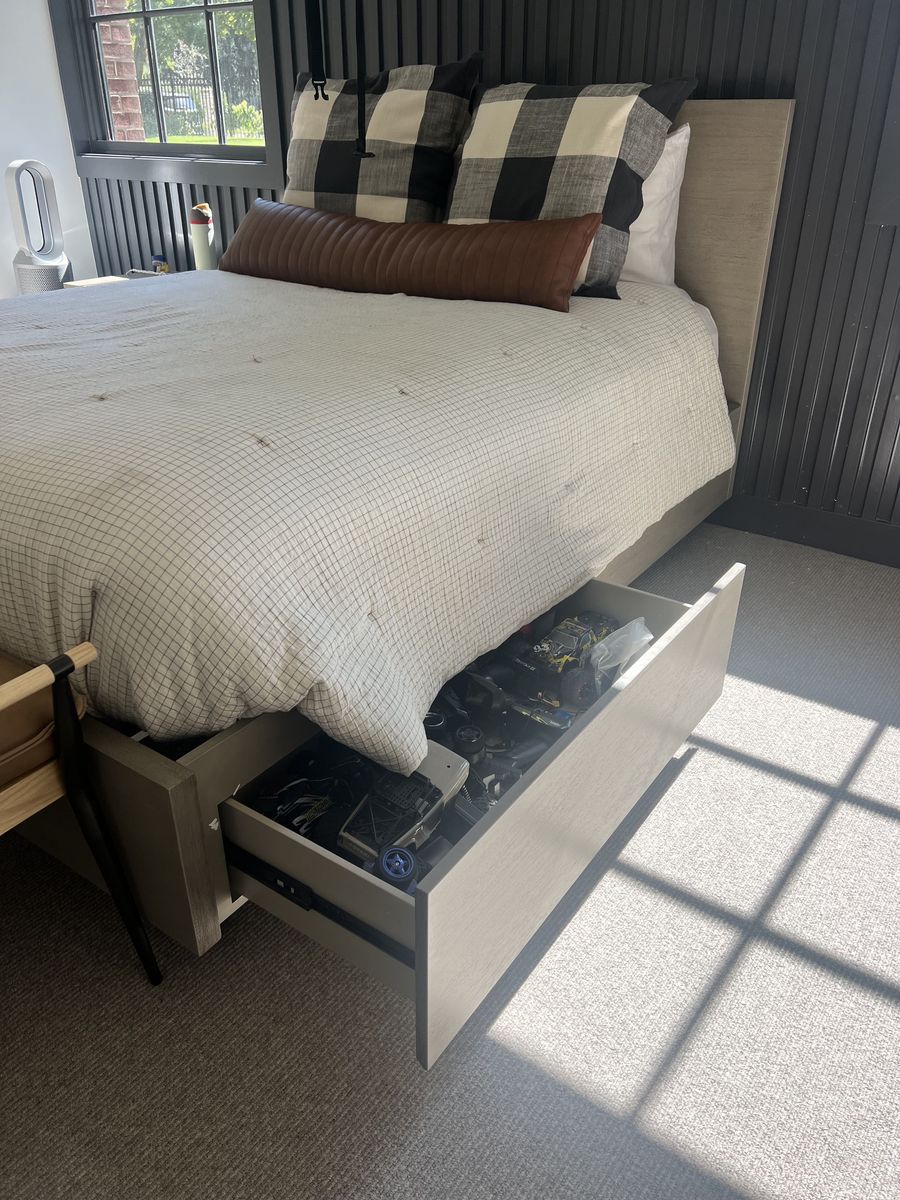 VenmoWest Elm storage bed, size queen. Two large drawers on each side. In great condition. Small Matching end tables available separately. $1200 OBO (end tables $200 each)