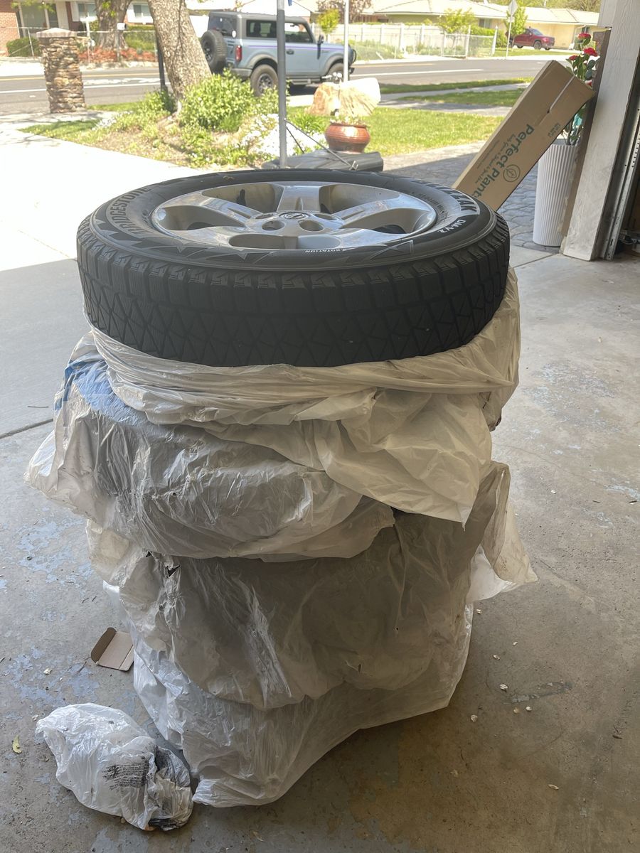 Set a Bridgestone blizzard, snow, tires, and rims