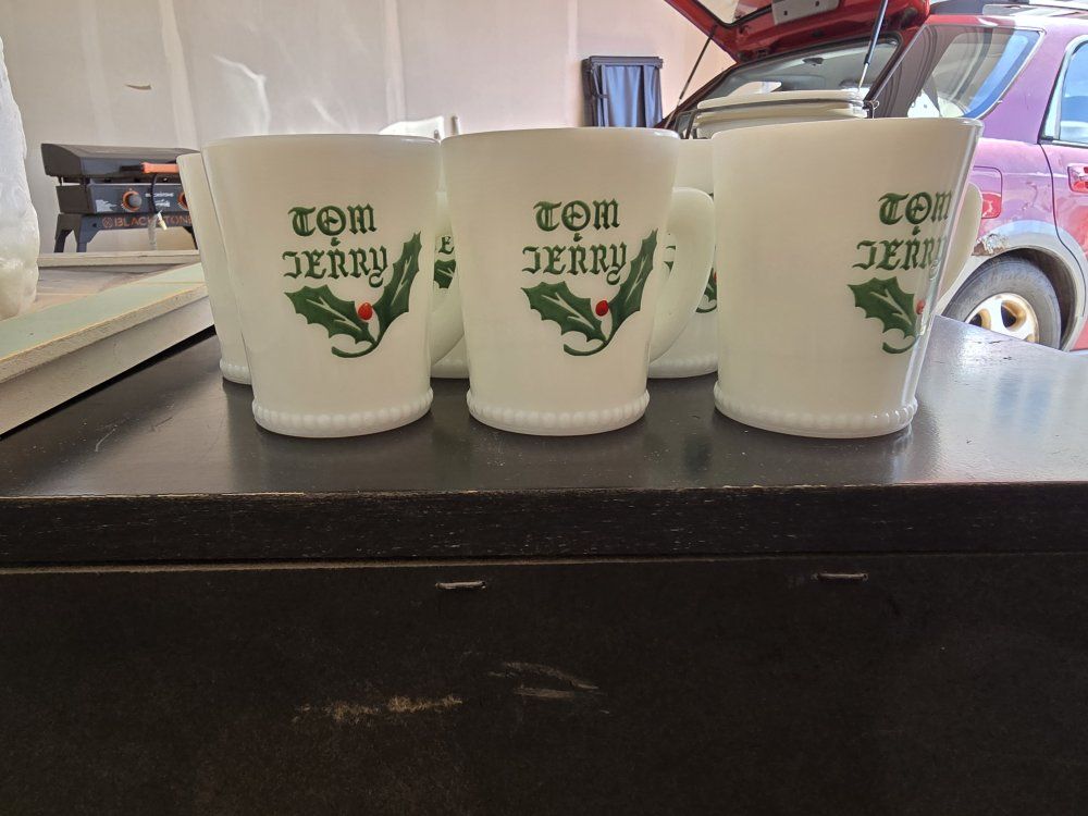 ZelleVintage Tom & Jerry Milk Glass Punchbowl & 11 cups, $100obo
