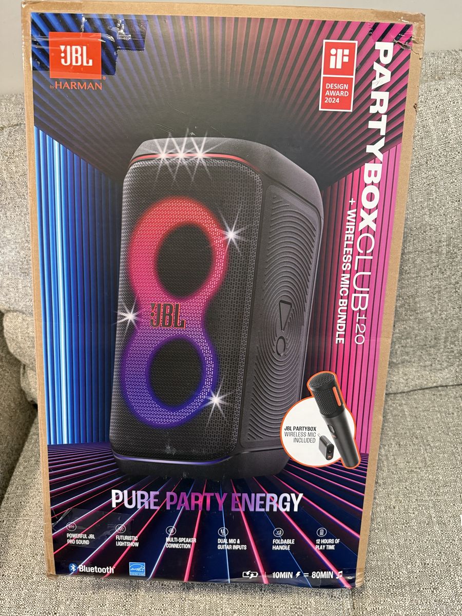 ApplePayPowerful JBL PartyBox club 120 speaker with matching wireless microphone. Awesome sound and cool party lights. Has Bluetooth connectivity and bass boost. Ready for good times! It retails for 449 online asking 290 located in sandy thanks!